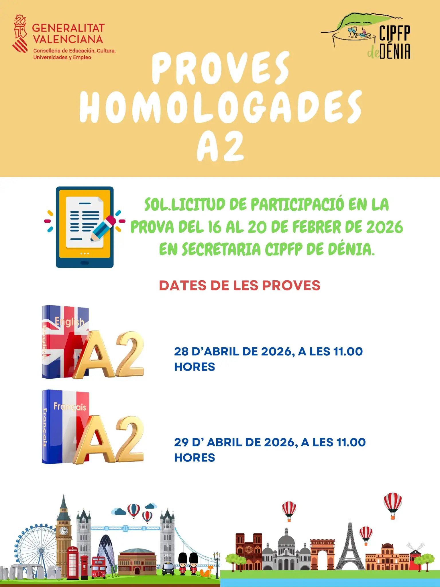 L'alumnat del CIPFP de Dénia té l'oportunitat de certificar el seu nivell d'idiomes presentant-se a les proves que es realitzaran al centre. Aquestes proves estan homologades per l'EOI i són gratuïtes.