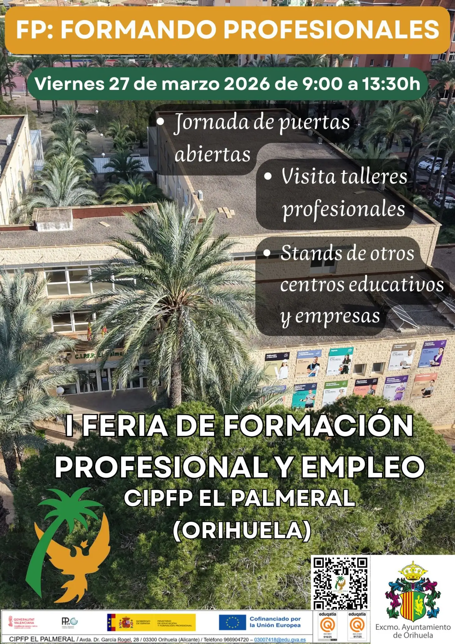 El próximo 27 de marzo celebramos nuestra I Feria de FP y Empleo en formato puertas abiertas, una jornada pensada para orientar, descubrir oportunidades y acercar la Formación Profesional al alumnado, familias y a toda la comunidad educativa.