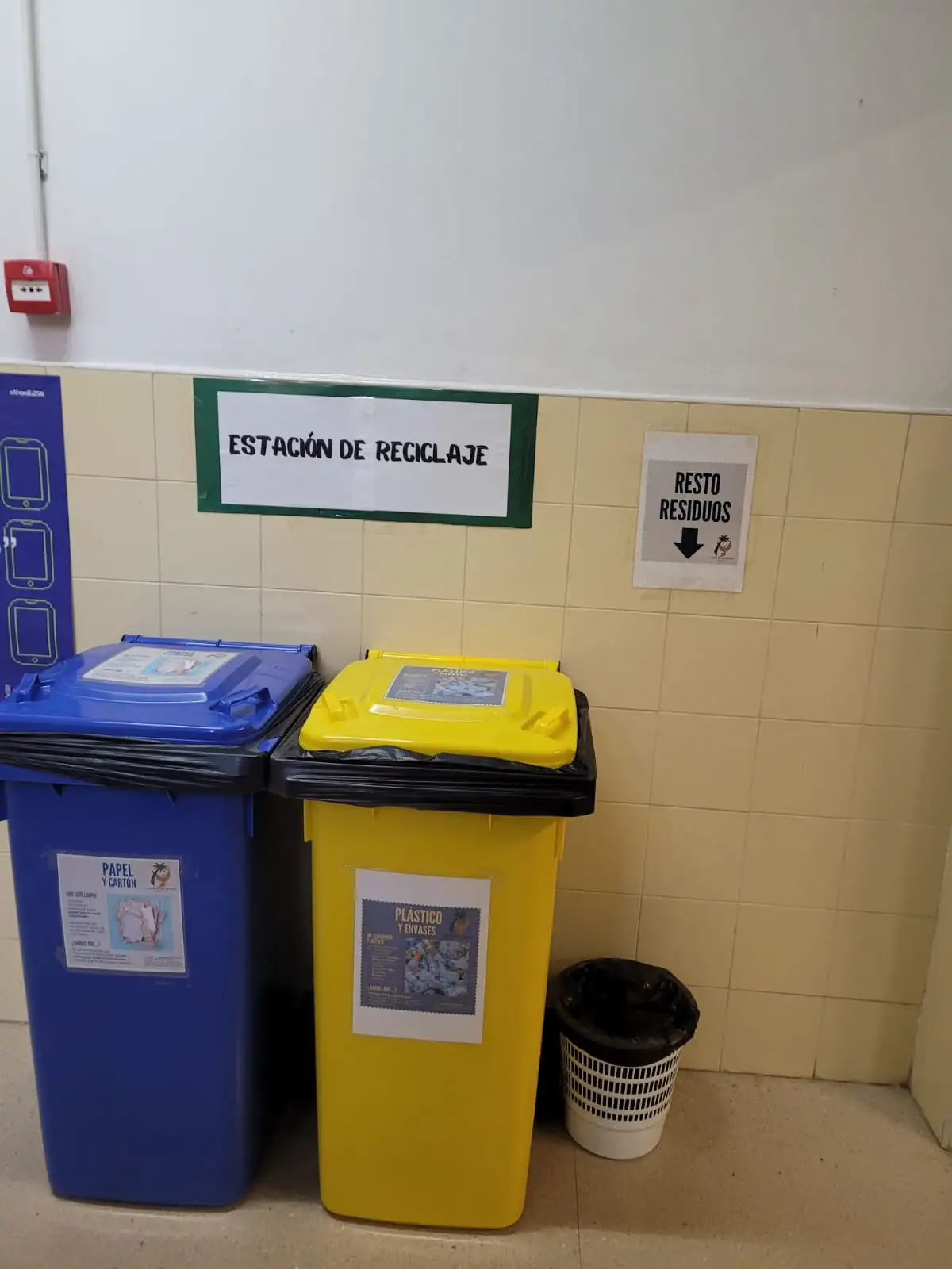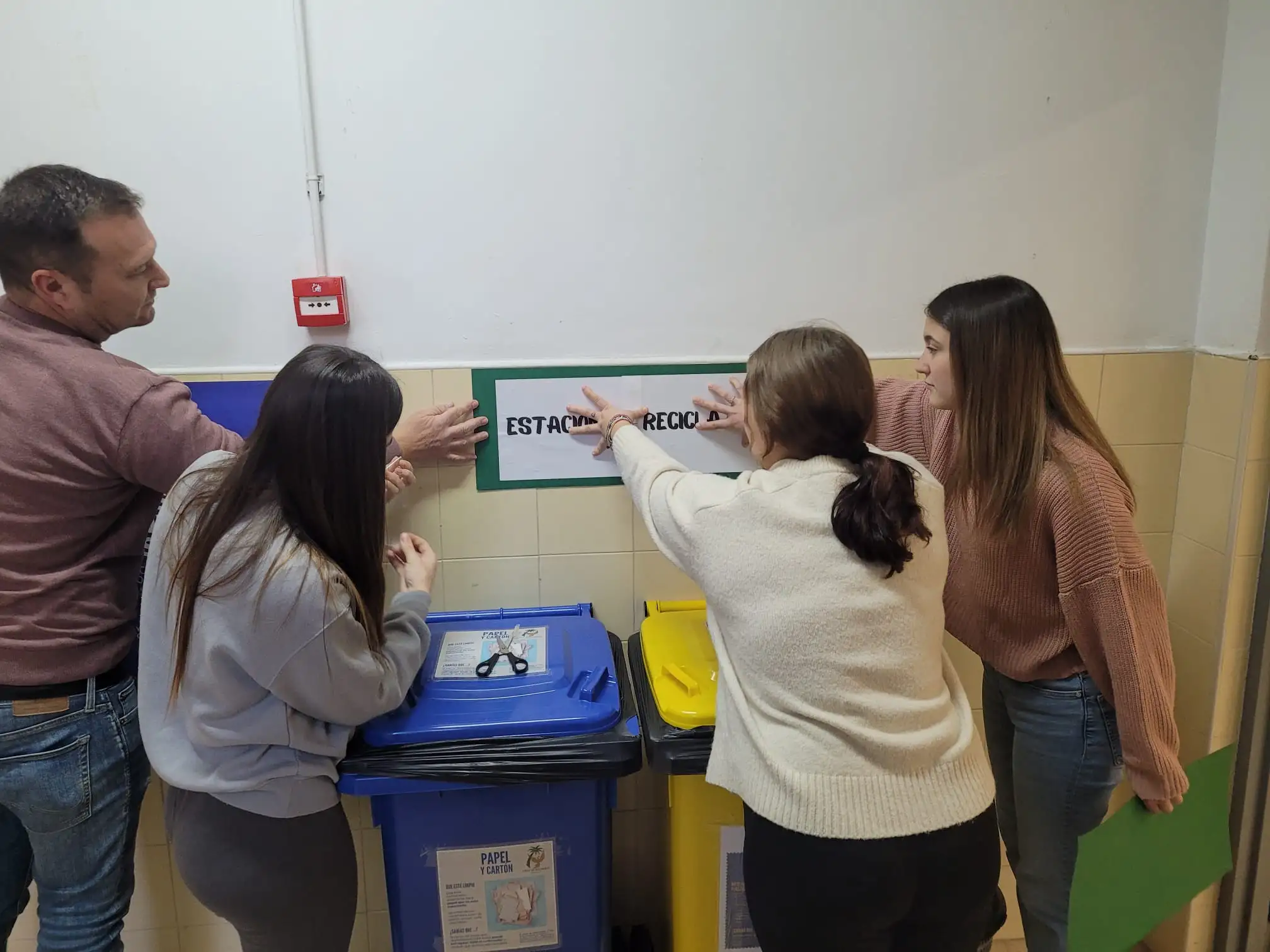 El alumnado de FP básica será el encargado del vaciado de las estaciones de reciclaje en los contenedores respectivos de la puerta del centro para reciclaje de papel y envases.