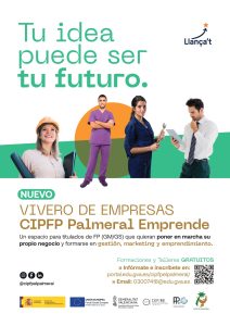 Si eres titulado/a de FP (Grado Medio o Superior) anímate a crear tu propia empresa. El CIPFP El Palmeral te ayudará en este proceso de emprendimiento. Inscríbete en el siguiente formulario https://forms.office.com/e/PGt0eYntu6 ¡Os esperamos!