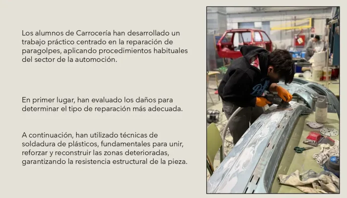 Durante dos cursos académicos (2025-2027), el alumnado desarrollará todas las fases del proceso técnico y formativo: desde el diagnóstico inicial, desmontaje y clasificación de componentes reutilizables, hasta la rehabilitación mecánica y eléctrica, integración de sistemas digitales y la presentación del prototipo final. Cada etapa del proyecto se articula mediante metodologías activas como el Aprendizaje Basado en Proyectos (ABP), el aprendizaje intermodular y el aprendizaje por retos, que favorecen la resolución colaborativa de problemas reales y el desarrollo de competencias profesionales transversales.