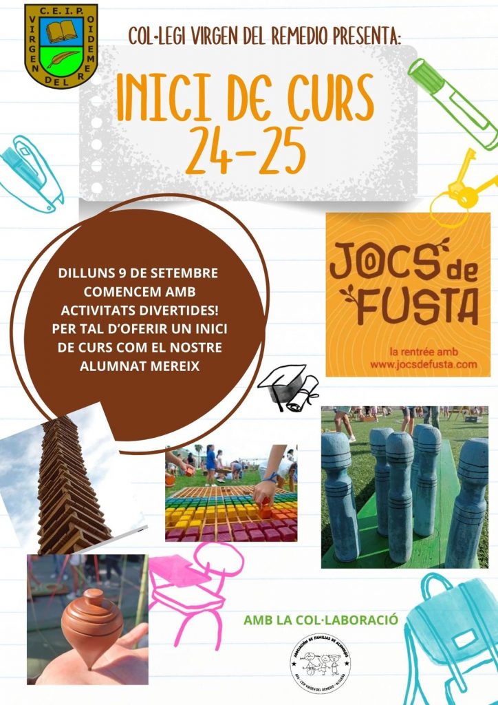 El proper dilluns, 9 de setembre, iniciem un nou curs escolar ple de nous reptes i somnis per cumplir. Aquest any ho farem amb una nova activitat; Tocamadera i Jocs de fusta que de segur serà una experiència meravellosa.