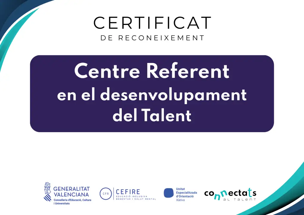 Distinció com a “Centre Referent en el desenvolupament del Talent de la Comunitat Valenciana”