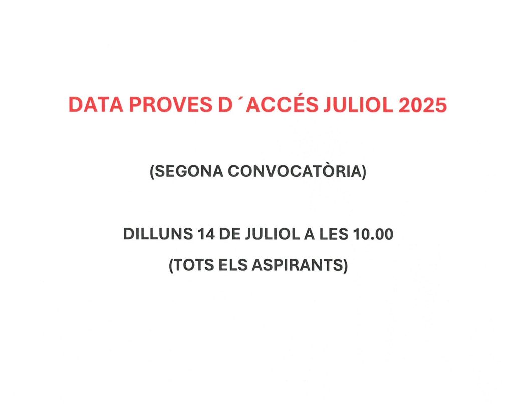Dates de la inscripció a les proves d’ingrés i accés.