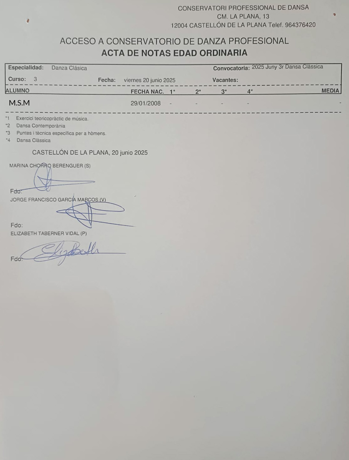 Las Enseñanzas Profesionales de Danza tienen una duración de seis cursos. Al finalizarlos se obtiene el Título de Técnico/a Profesional en Danza de la especialidad cursada, bien sea danza Clásica o danza Contemporanea. Para conocer mejor la estructura de las enseñanzas y de la titulación podéis consultar el listado de FAQ – preguntas frecuentes que recoge la Consellería de Educación.