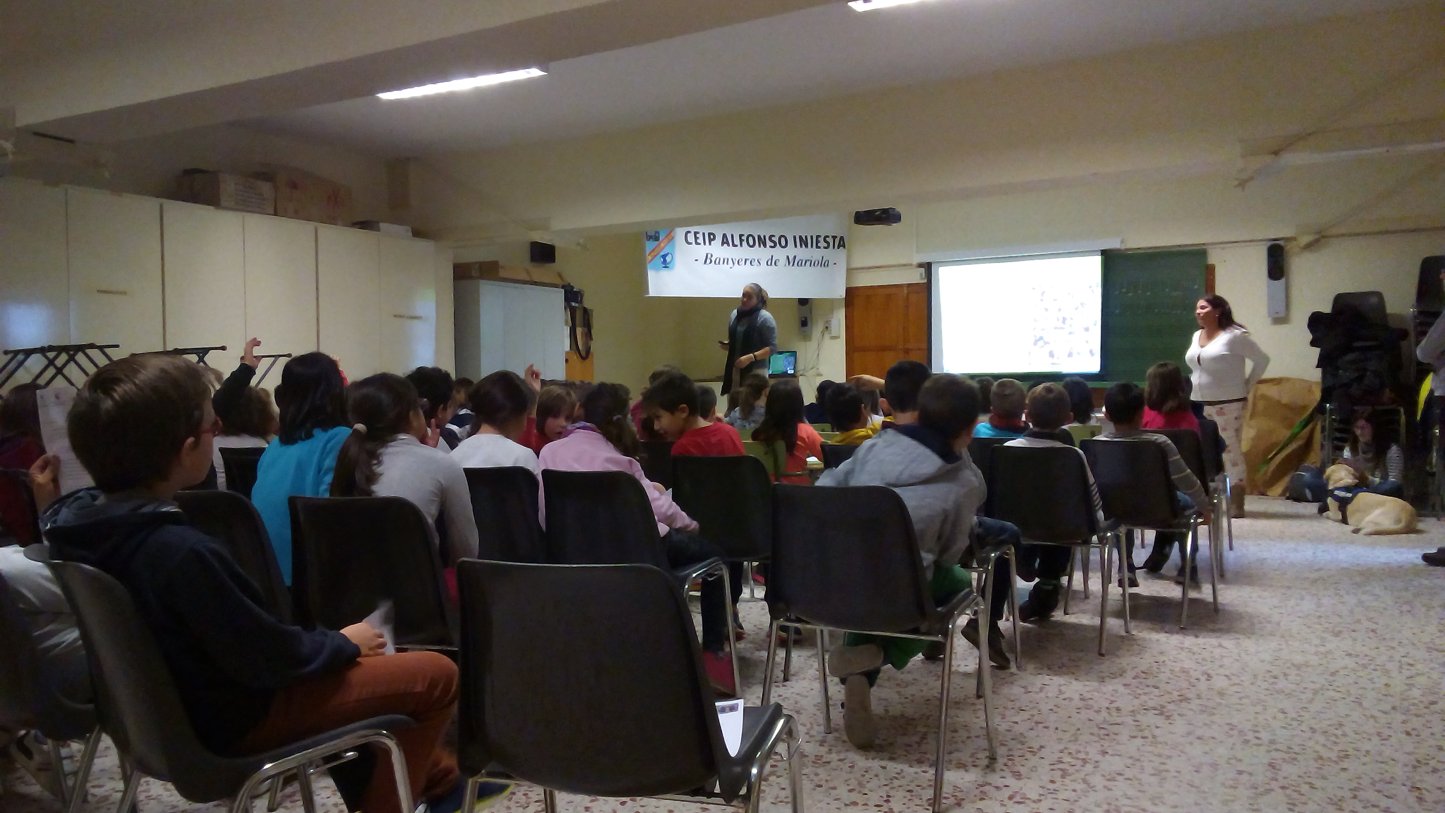 AMABA de Banyeres de Mariola junt a la Protectora d’Animals de Villena ens han exposat als alumnes de 3r i 4rt de primària una xerrada molt interessant contra el maltractament animal. Hem tingut la sort d’estar acompanyats d’un gos que va ser adoptat per una d’elles i que ens ha alegrat el matí.