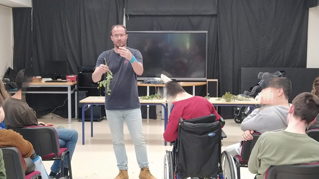 Així, ens vam reunir tot el centre a la sala multiusos per escoltar, tocar i oldre totes les plantes que va dur, que no eren poques. Anava ensenyant-nos-les una a una, i contant-nos coses sobre elles: propietats, usos tradicionals, textures, curiositats… A continuació, les anava passant per a què tothom tinguera l’ocasió d’explorar-les de prop. Va ser una sessió molt interessant que va agradar a tot l’alumnat i professorat. Moltes gràcies Tono per la teua visita!
