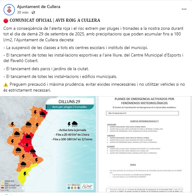 🔴 COMUNICAT OFICIAL | Cullera 29/09/2025 (Actualització 14.30h)