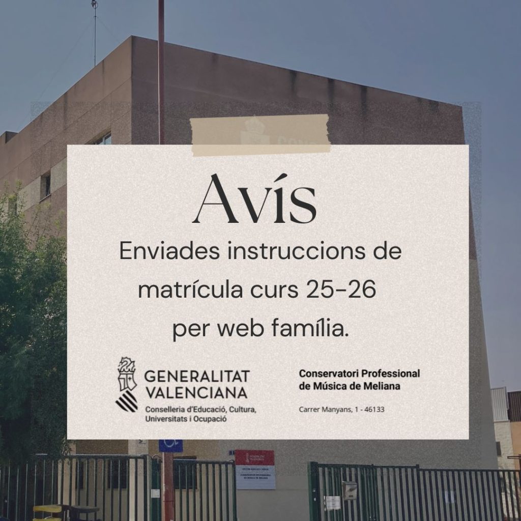 Enviades instruccions de matrícula per al curs 2025-26 per Web família.