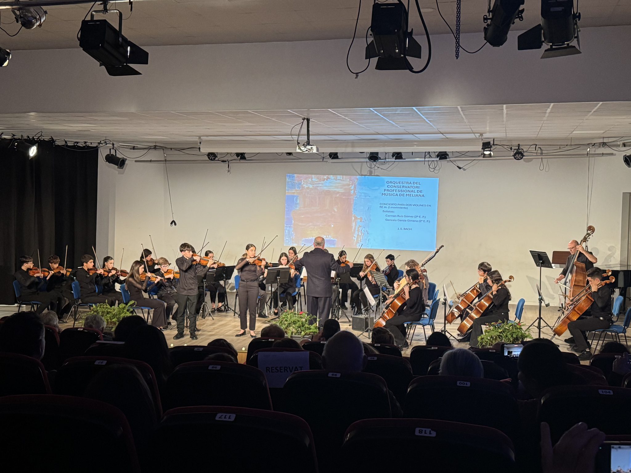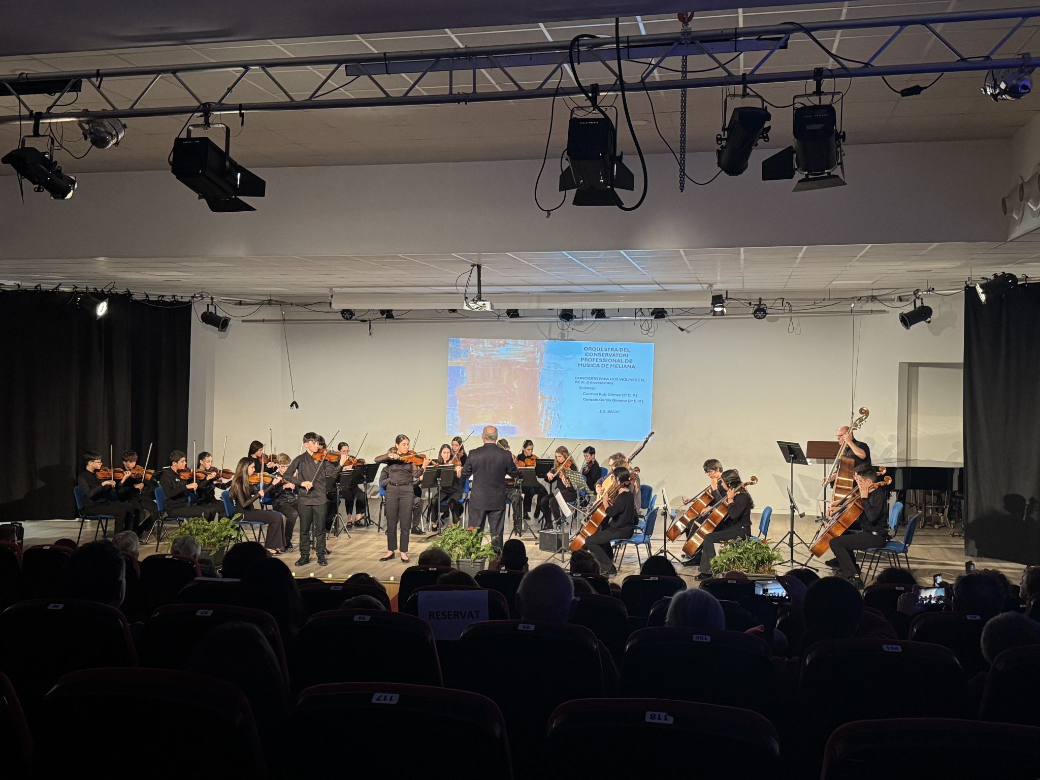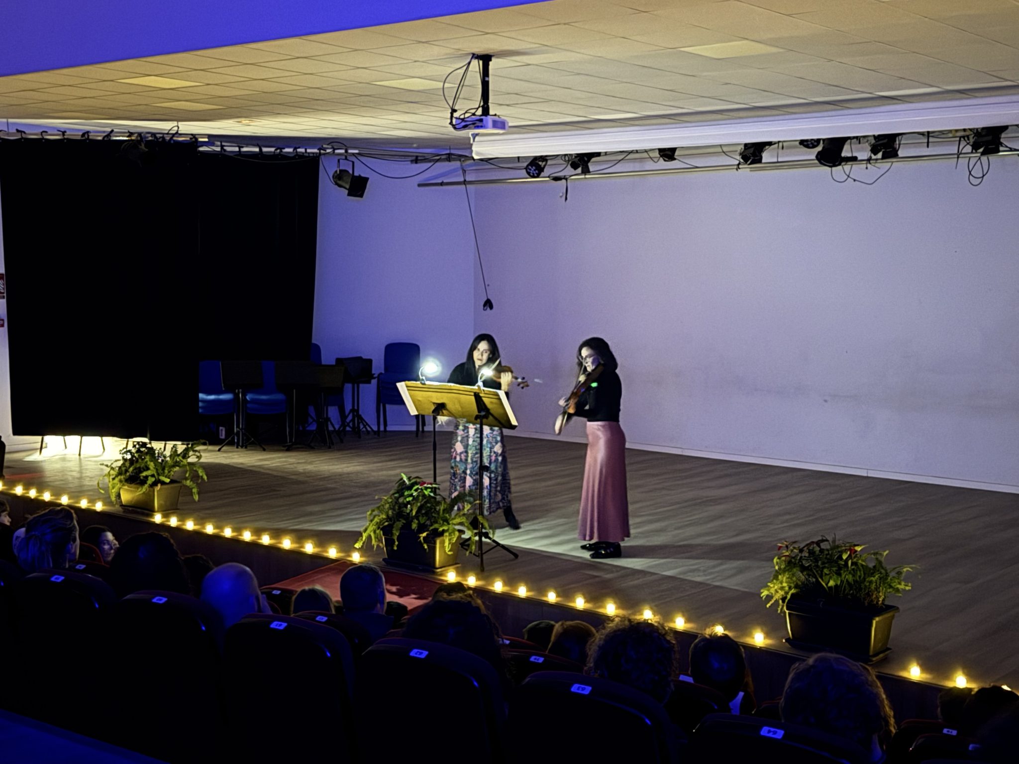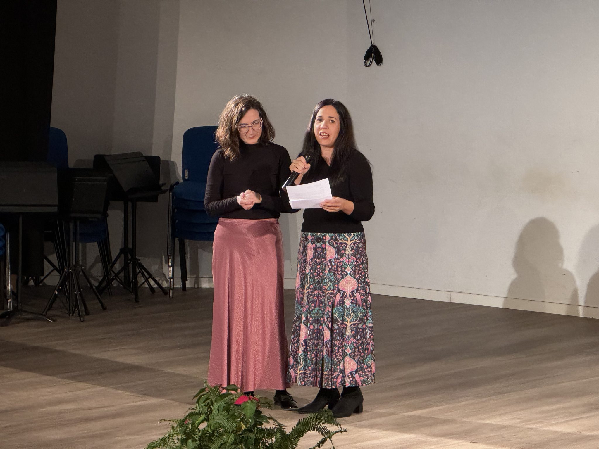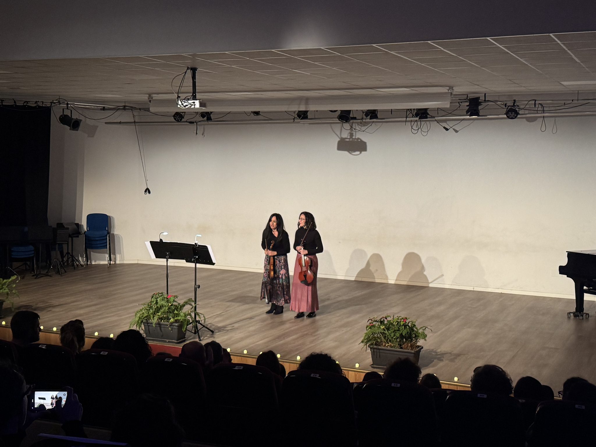 L’acte va començar amb la intervenció de les professores Patricia Genís i M. Carmen Moros amb una peça de Sibelius, més concretament el Duo en C Major.