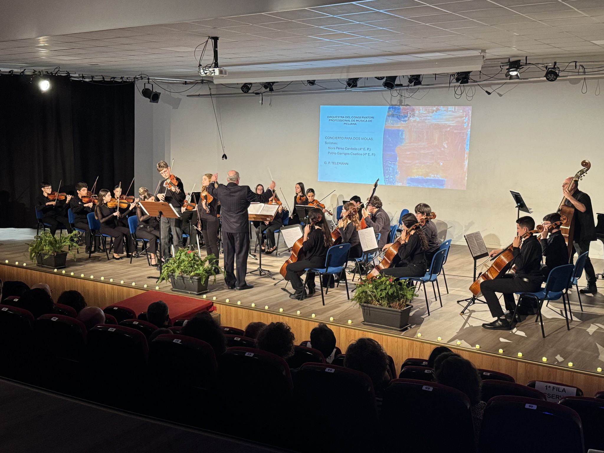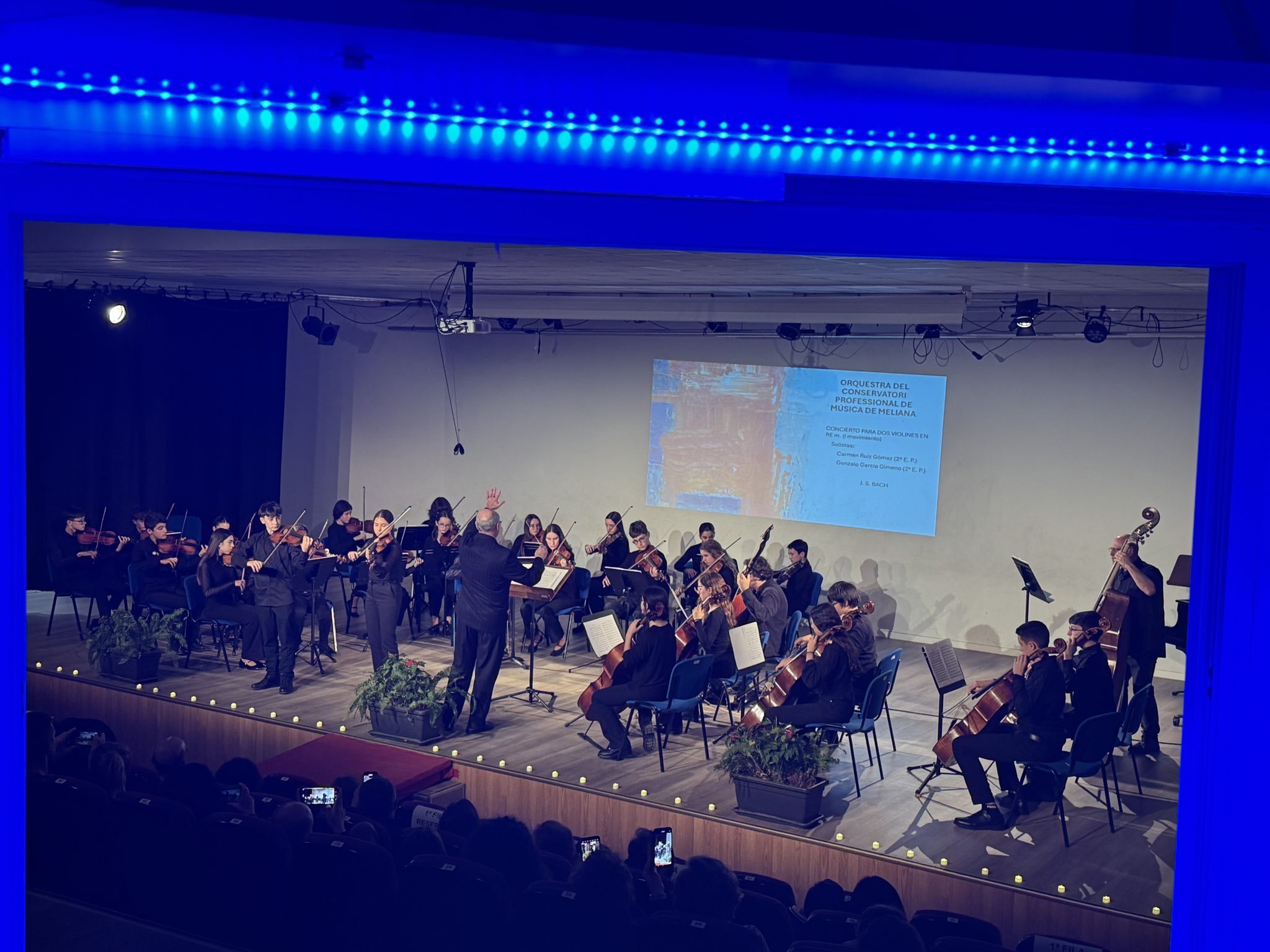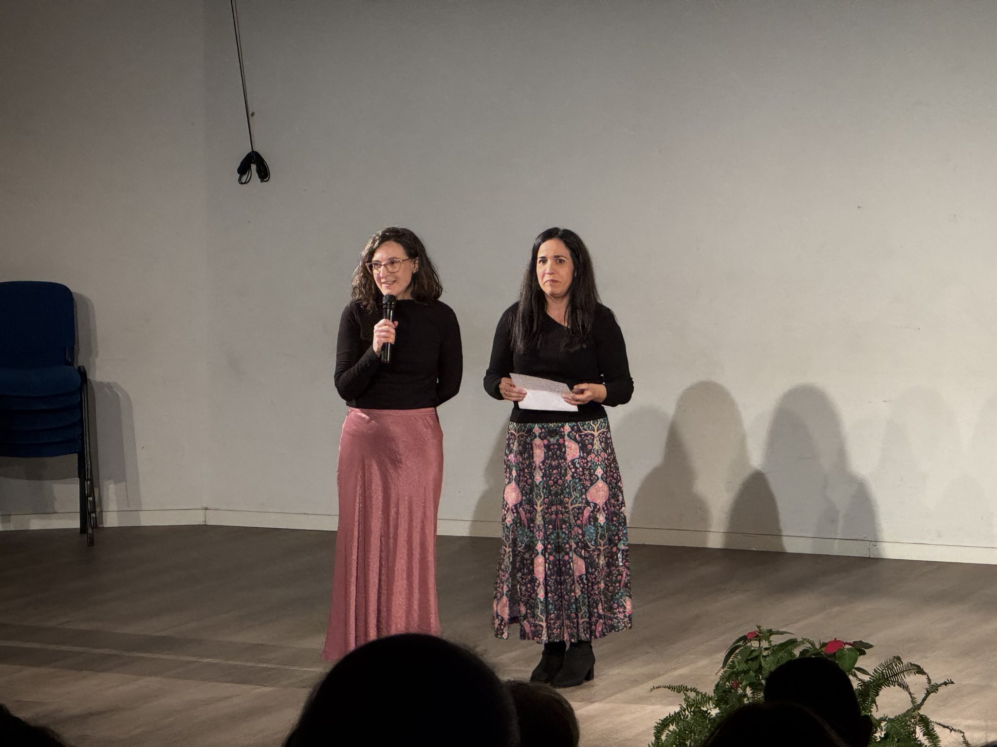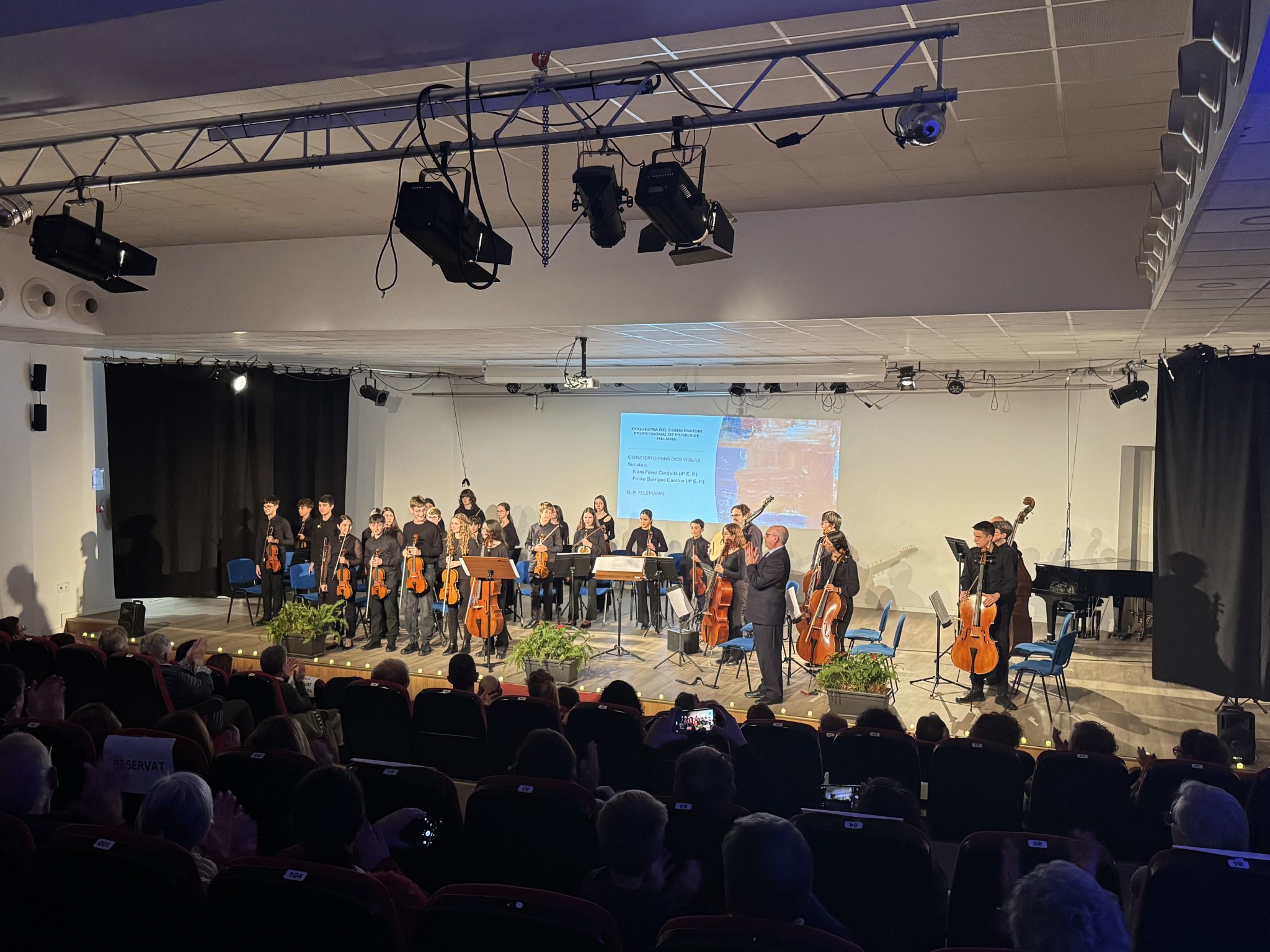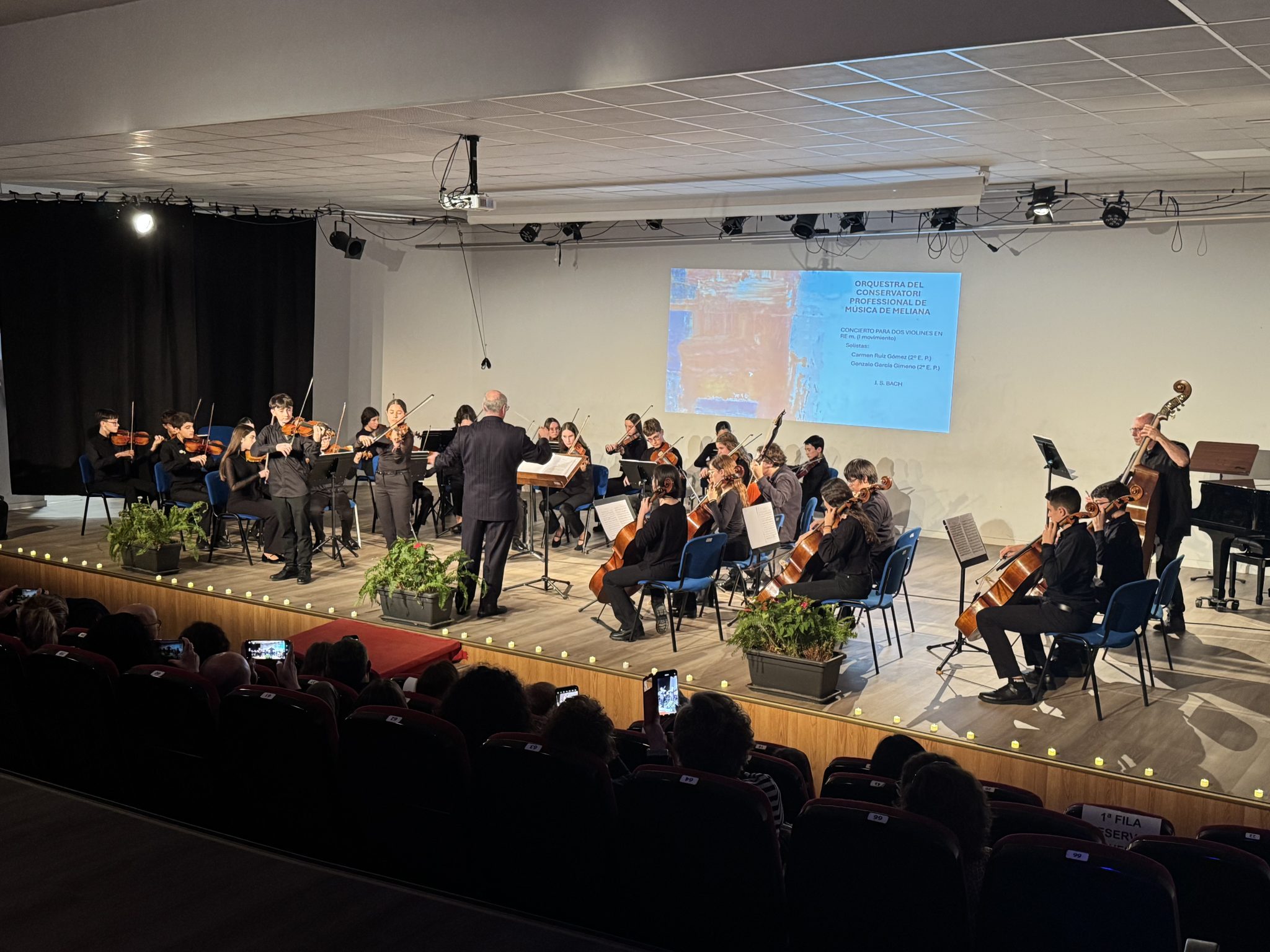 L’acte va començar amb la intervenció de les professores Patricia Genís i M. Carmen Moros amb una peça de Sibelius, més concretament el Duo en C Major.