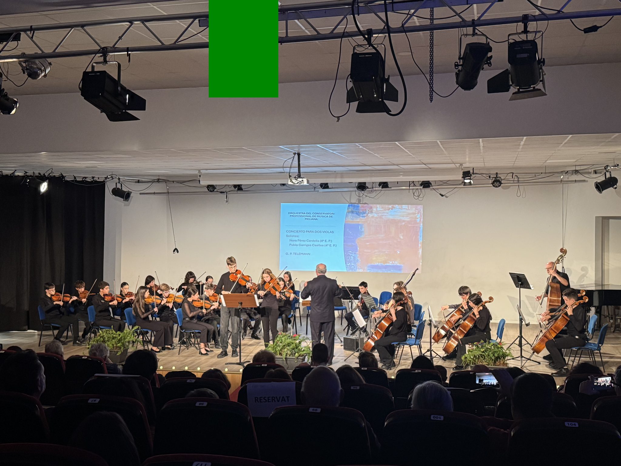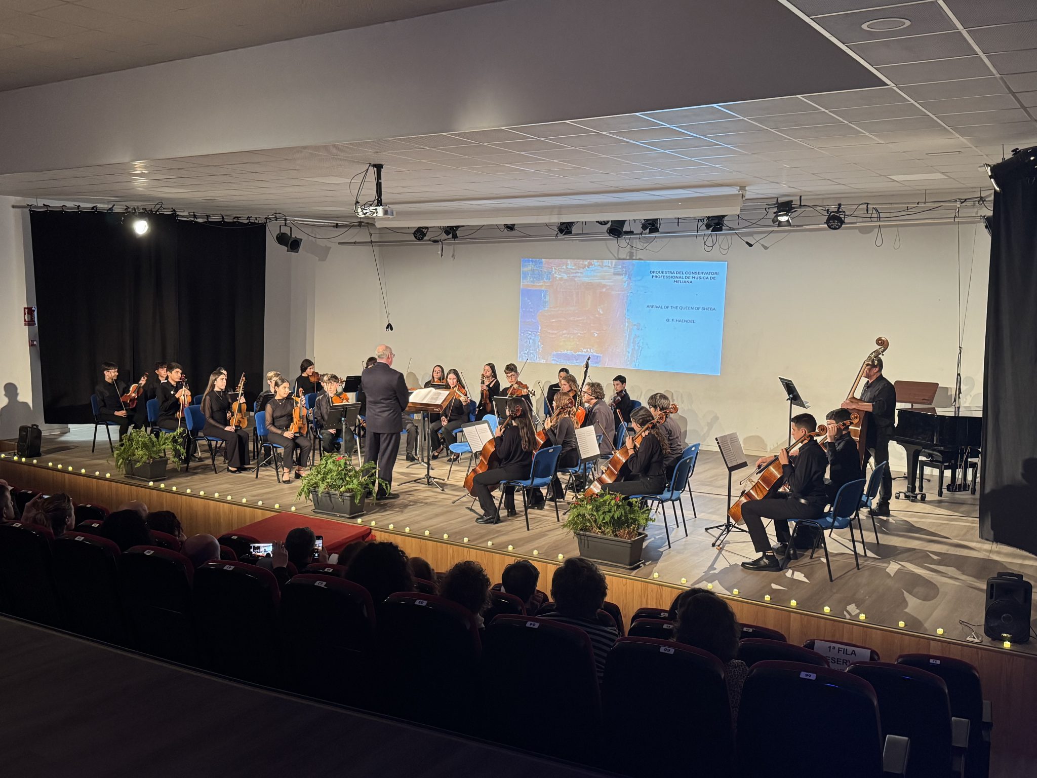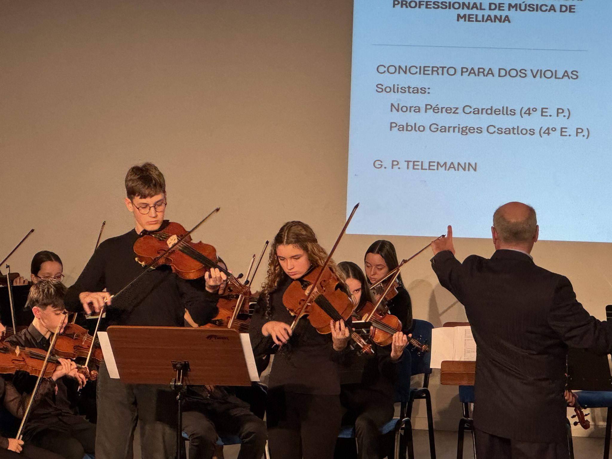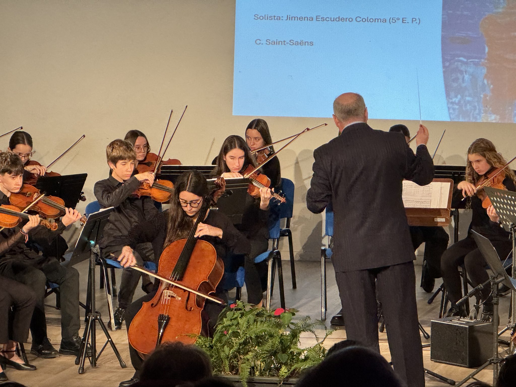 El programa presentava diferents obres de G. F. Haendel, C. Saint-Saëns, J. S. Bach i G. P. Telemann per a solistes baix la direcció del professor Pedro J. Sancho. Com a instruments solistes varen actuar Jimena Escudero, cello de 5é EE.PP., Carmen Ruiz i Gonzalo García, els dos violinistes de 2n d’EE.PP. i Nora Pérez i Pablo Garrigues., violes de 4t EE.PP.