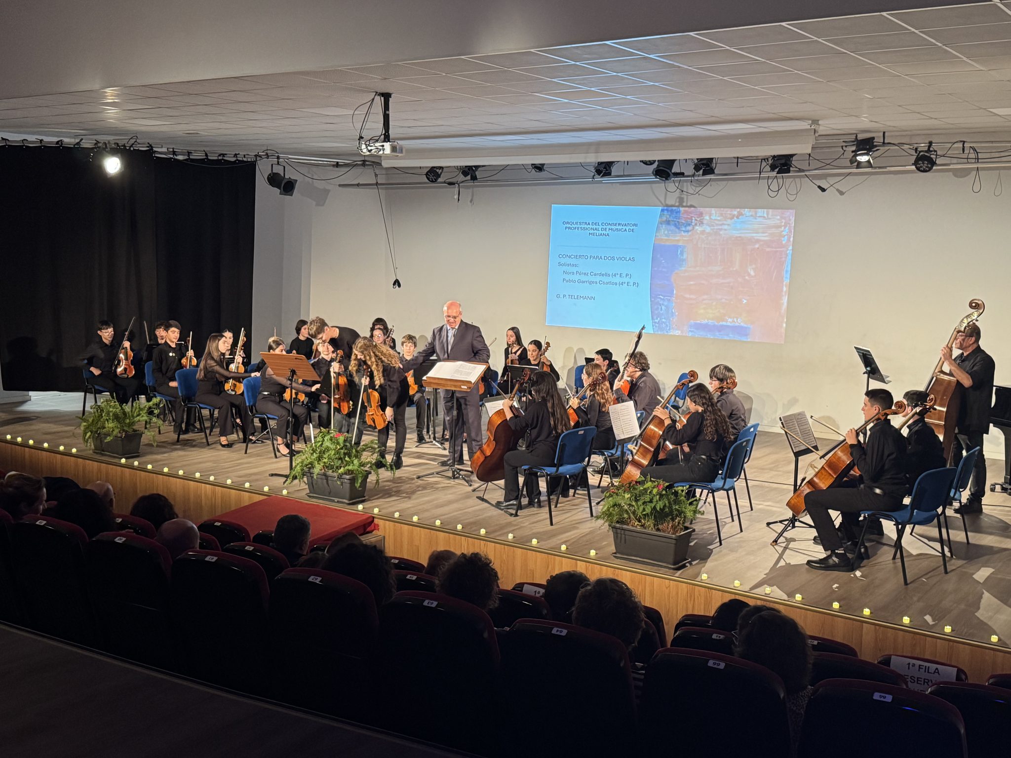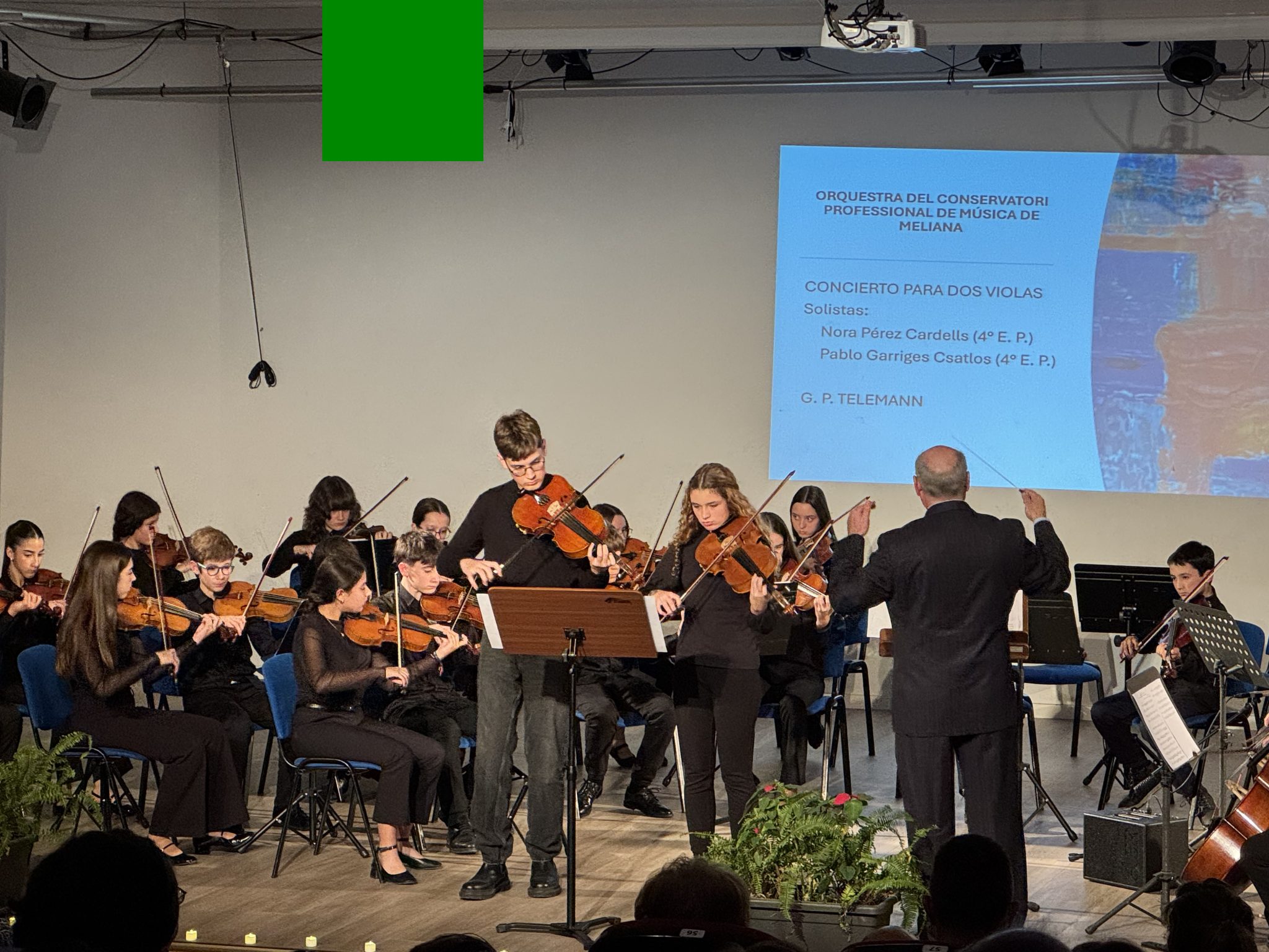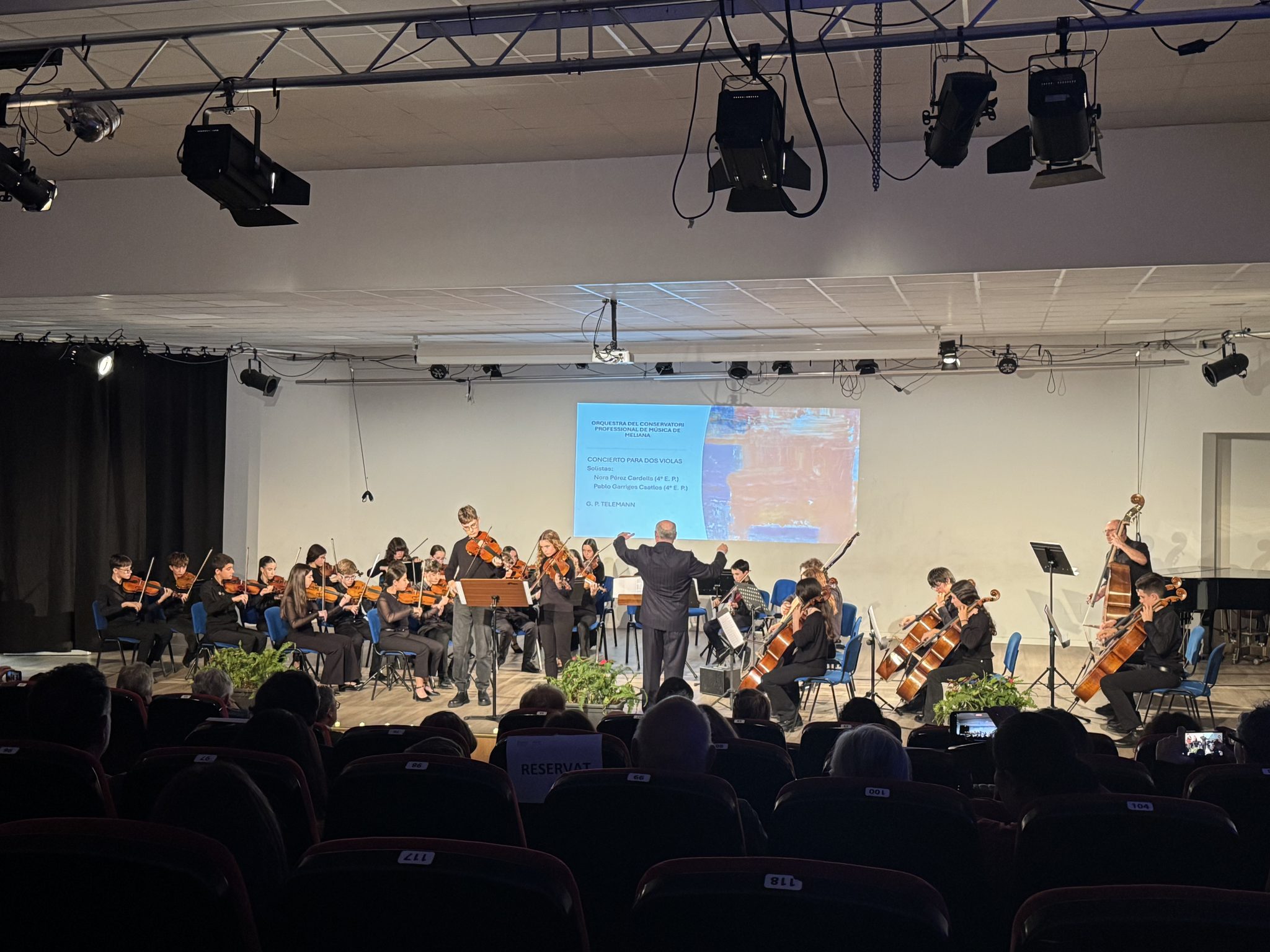 El programa presentava diferents obres de G. F. Haendel, C. Saint-Saëns, J. S. Bach i G. P. Telemann per a solistes baix la direcció del professor Pedro J. Sancho. Com a instruments solistes varen actuar Jimena Escudero, cello de 5é EE.PP., Carmen Ruiz i Gonzalo García, els dos violinistes de 2n d’EE.PP. i Nora Pérez i Pablo Garrigues., violes de 4t EE.PP.