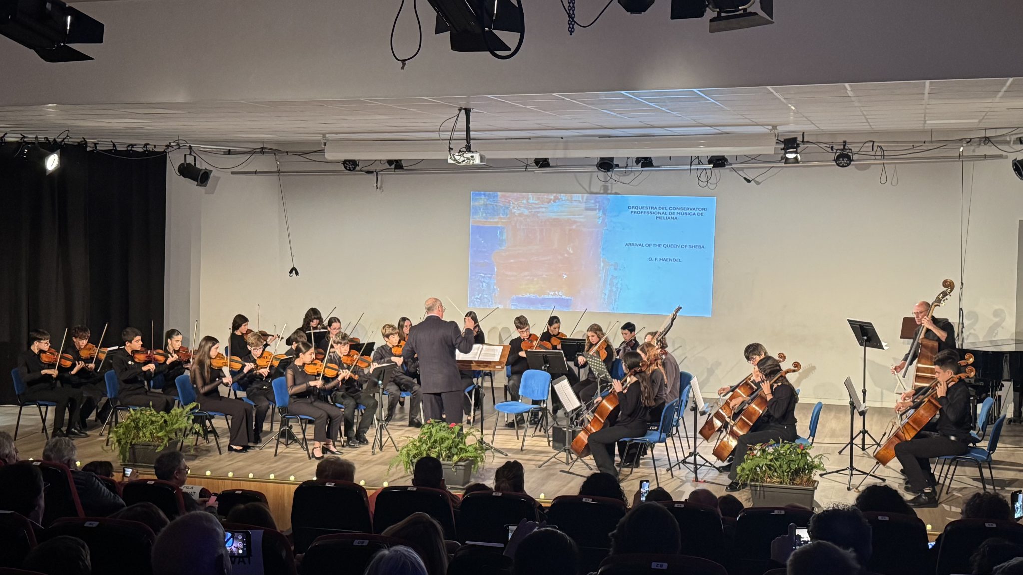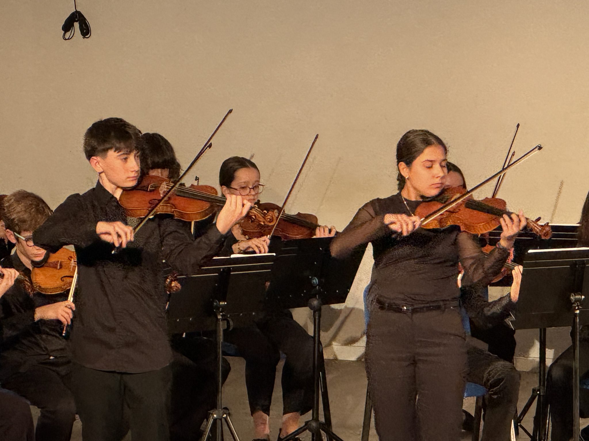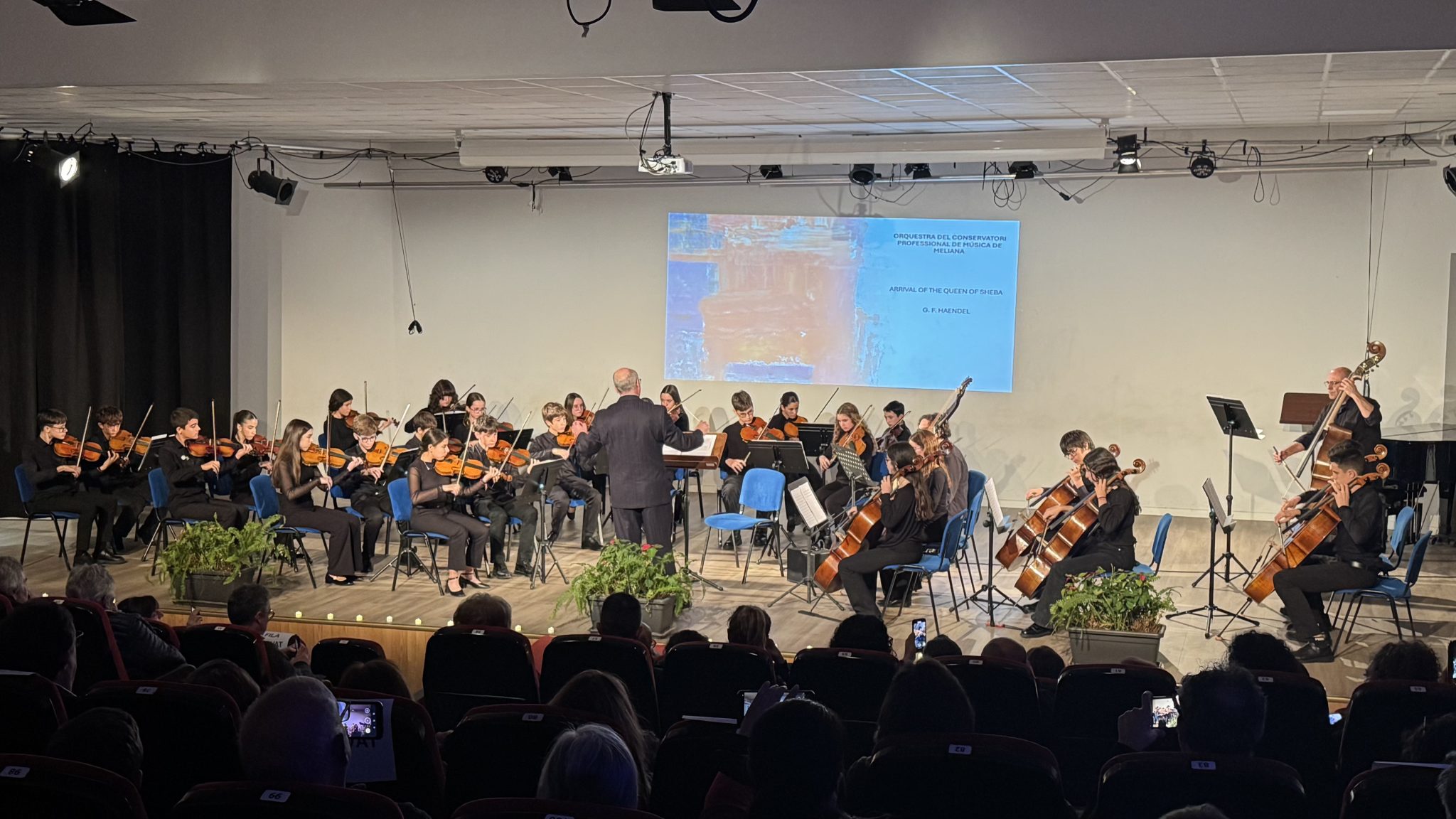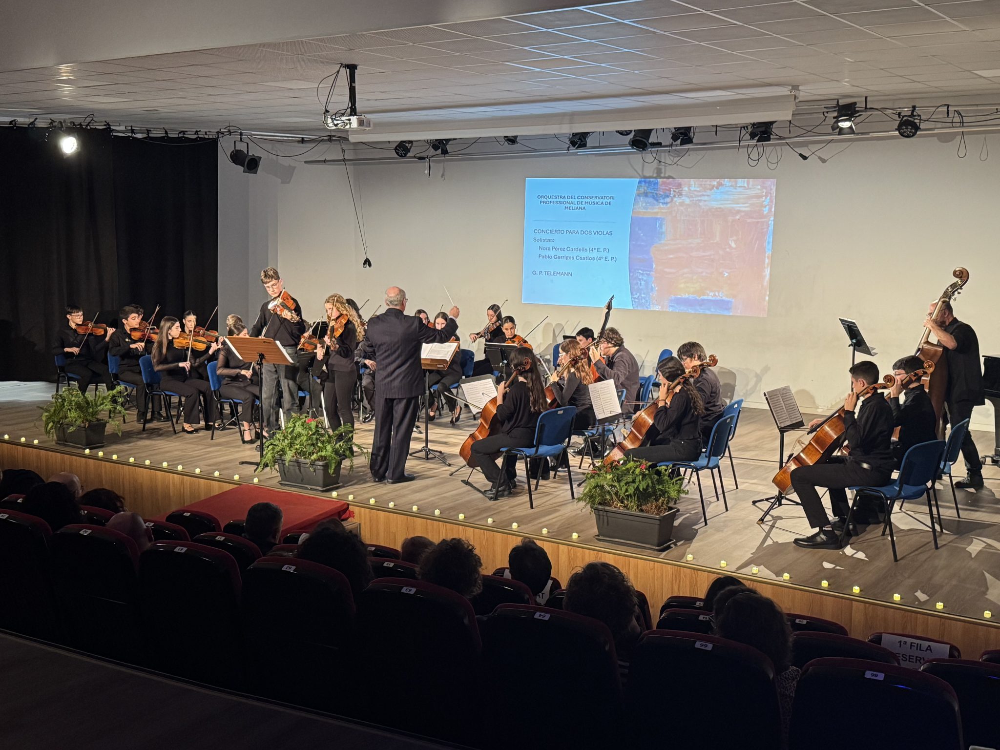 El programa presentava diferents obres de G. F. Haendel, C. Saint-Saëns, J. S. Bach i G. P. Telemann per a solistes baix la direcció del professor Pedro J. Sancho. Com a instruments solistes varen actuar Jimena Escudero, cello de 5é EE.PP., Carmen Ruiz i Gonzalo García, els dos violinistes de 2n d’EE.PP. i Nora Pérez i Pablo Garrigues., violes de 4t EE.PP.