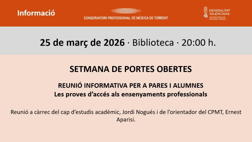 Reunió informativa alumnat 4t EEPP. 18 febrer, 20 h.