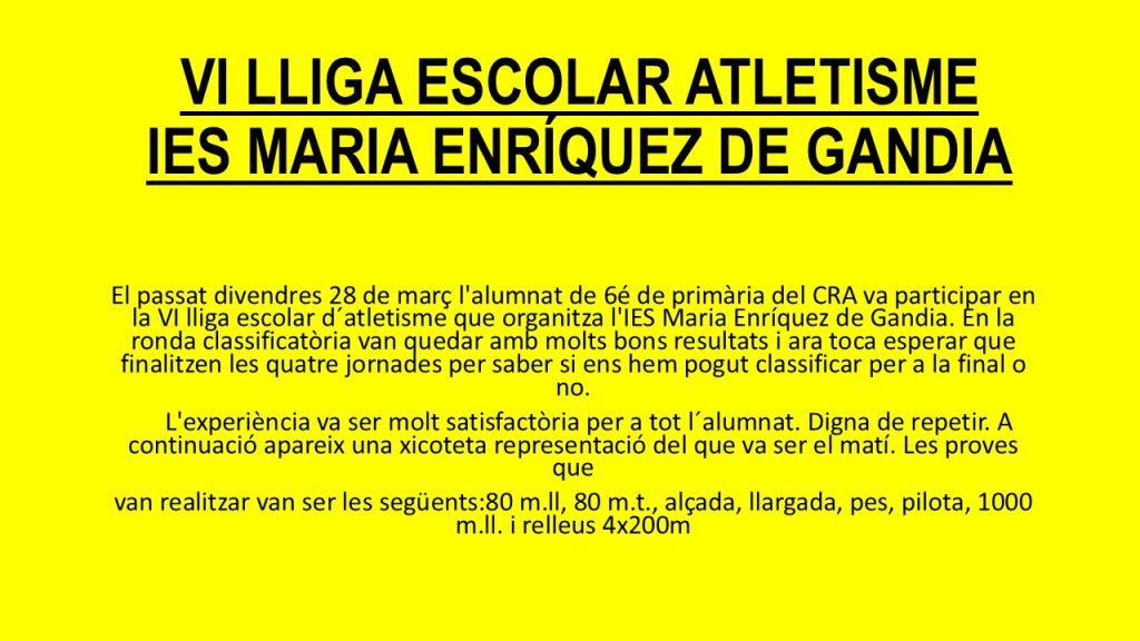 Activitat 21. LLIGA ESCOLAR ATLETISME GANDIA