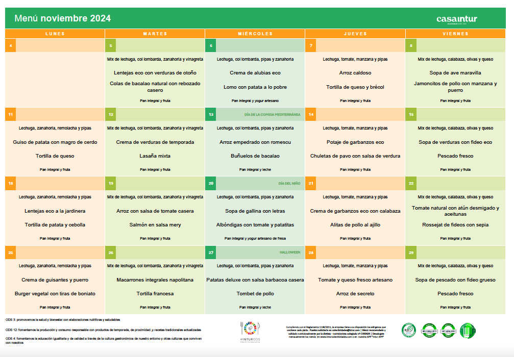 Benvulgudes famílies, en aquesta pàgina vos anirem penjant els menús mensuals del menjador de CASA Intur.