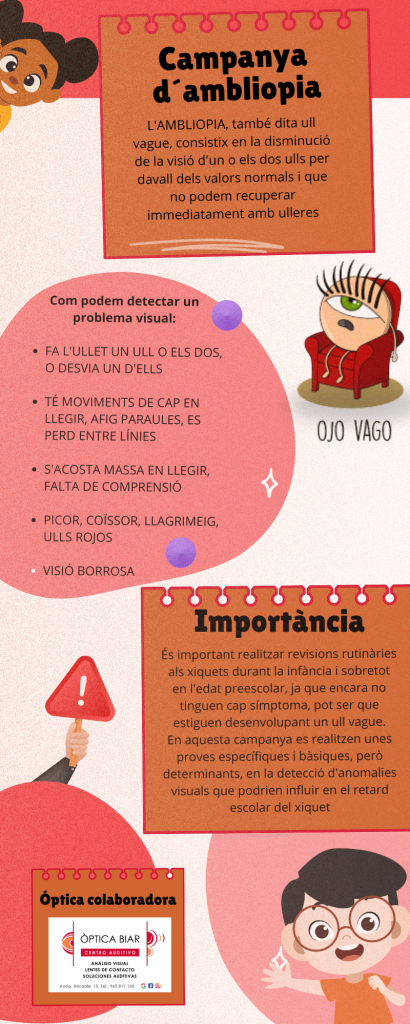 Aquesta setmana es farà la campanya anual de l’ambliopia, en què les optometristes d’Òptica Biar es desplaçaran al CRA Els Calderones (aquesta vegada als dos aularis) amb l’objectiu de realitzar controls visuals als nens de 2n d’infantil.