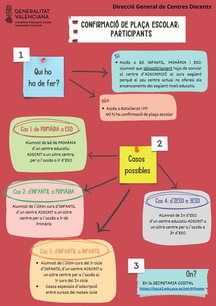 Les famílies de l’alumnat de 6é del CRA que cursarà l’any vinent 1r d’ESO han de confirmar la seua plaça a l’IES de referència. Ací teniu la informació al respecte. Per a resoldre qualsevol dubte crideu a l’escola.