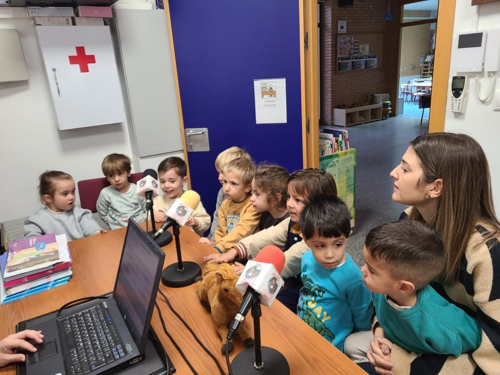 Els xiquets i xiquets de 3 i 4 anys de Sant Joanet han vingut a Ràdio CRA i ens han parlat de moltes coses. Ens han contat el que fèrem a “Les Caterinetes” i ens han cantat la cançò. També ens han presentat a un nou amic de classe: “Trueno” i ens han recitat un poesia que han aprés.