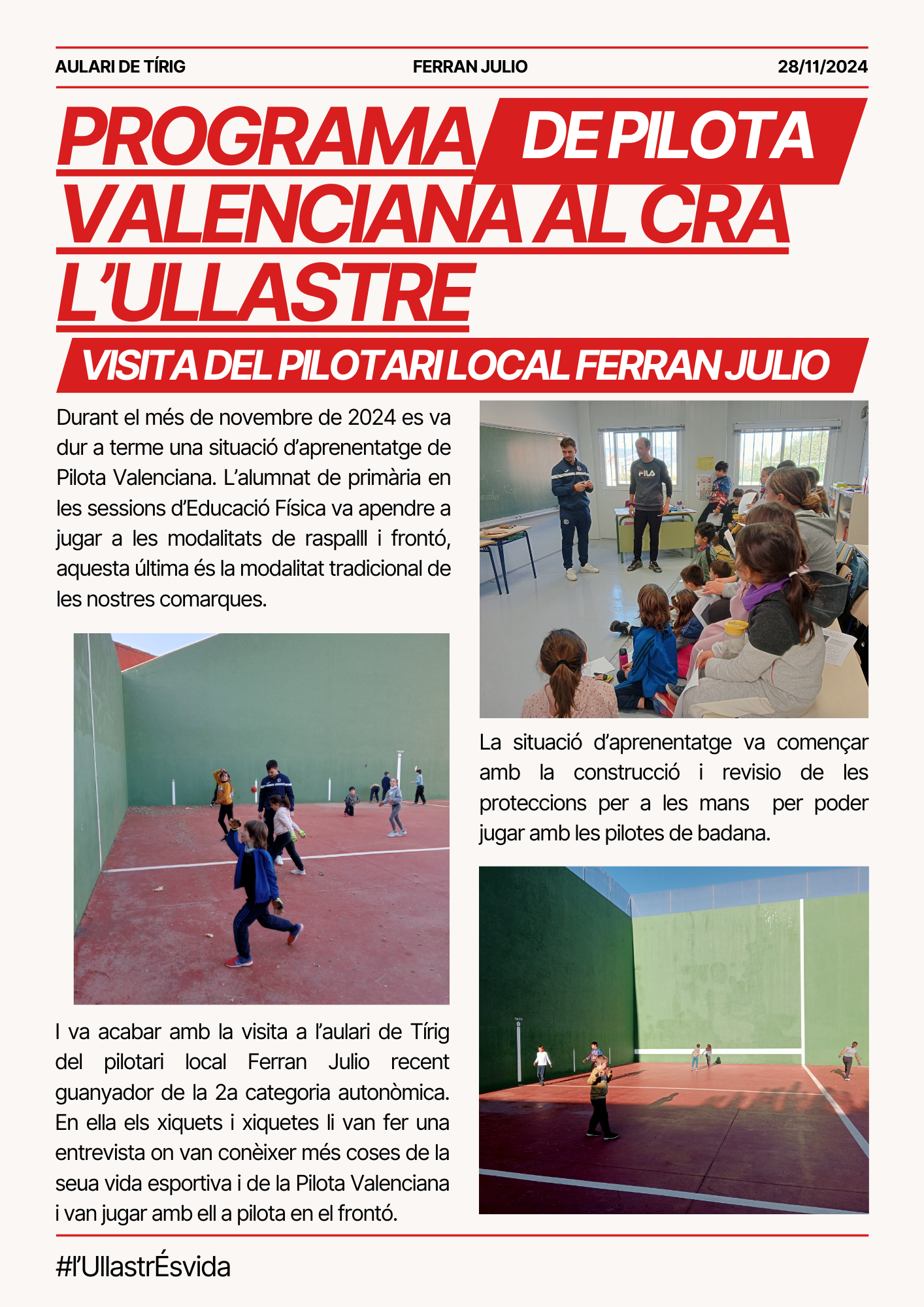 El passat 3 d’abril de 2025 alumnat i equip docent del CRA l’Ullastre es van desplaçar a les pistes d’atletisme de Vinaròs per celebrar el dia de l’esport juntament amb nou centres més de les comarques de l’Alt i Baix Maestrat.