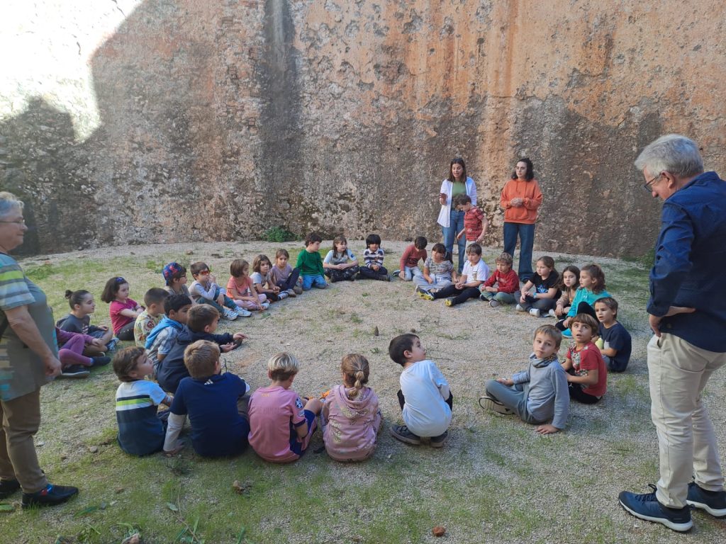 Hem rebut la visita dels xiquets i xiquetes de 1r i 2n de primària de Potries, i estan realitzant la jornada de convivència amb activitats com la visita a la Nevera de Barx amb l’explicació d’Evarist Donet.