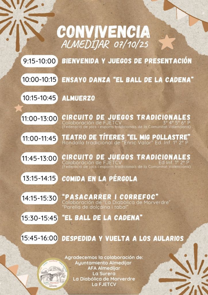 El martes 7 de octubre de 2024 todo el profesorado y alumnado del CRA Palancia-Espadán acudimos en Almedíjar para celebrar nuestra primera convivencia y relacionarnos con el resto de compañeros/as del colegio.