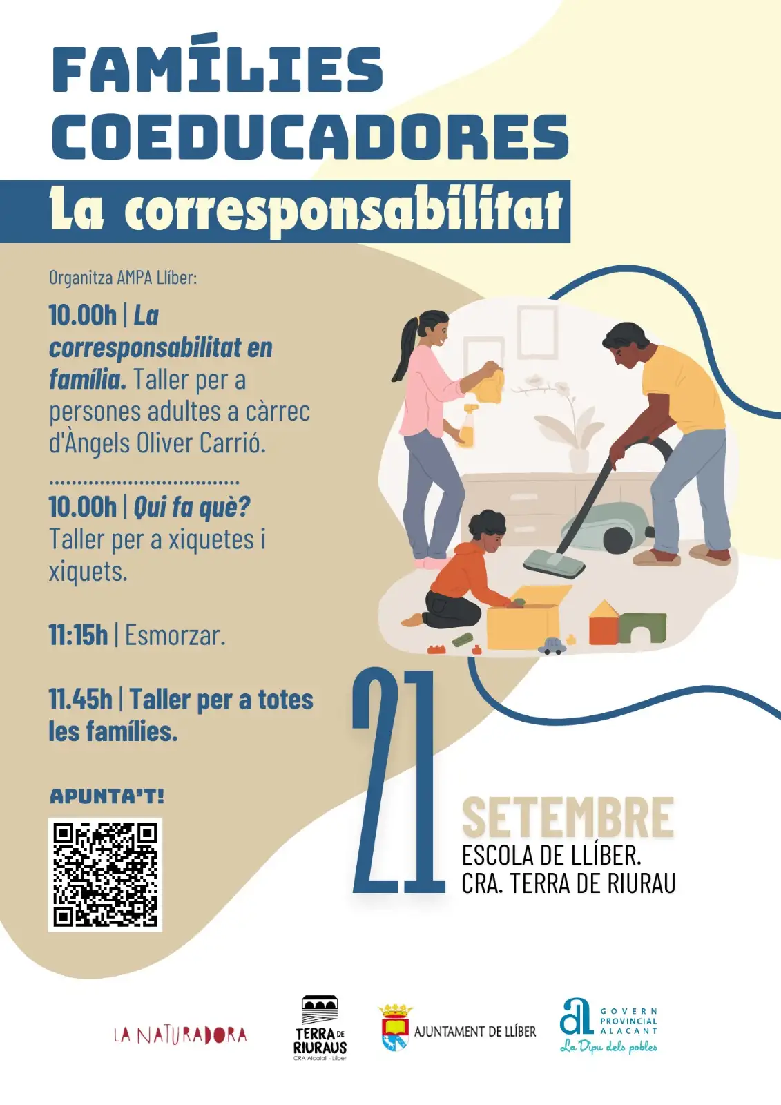 - Oferir xerrades/tallers on donar suport a les famílies per conèixer i entendre millor els nostres infants, augmentant la qualitat de la relació i millora de la nostra intervenció educativa amb els nostres fills i filles.