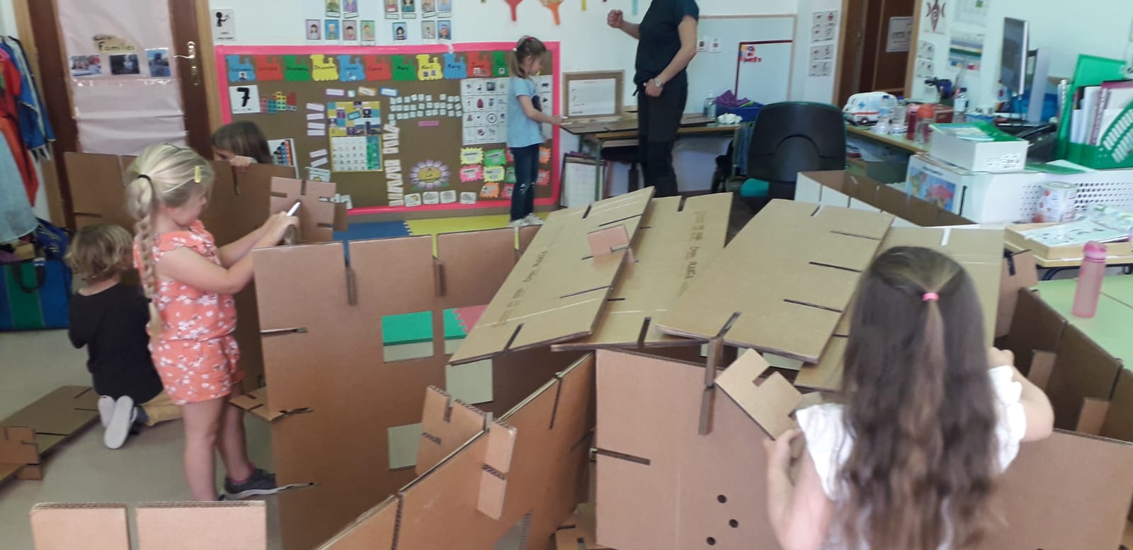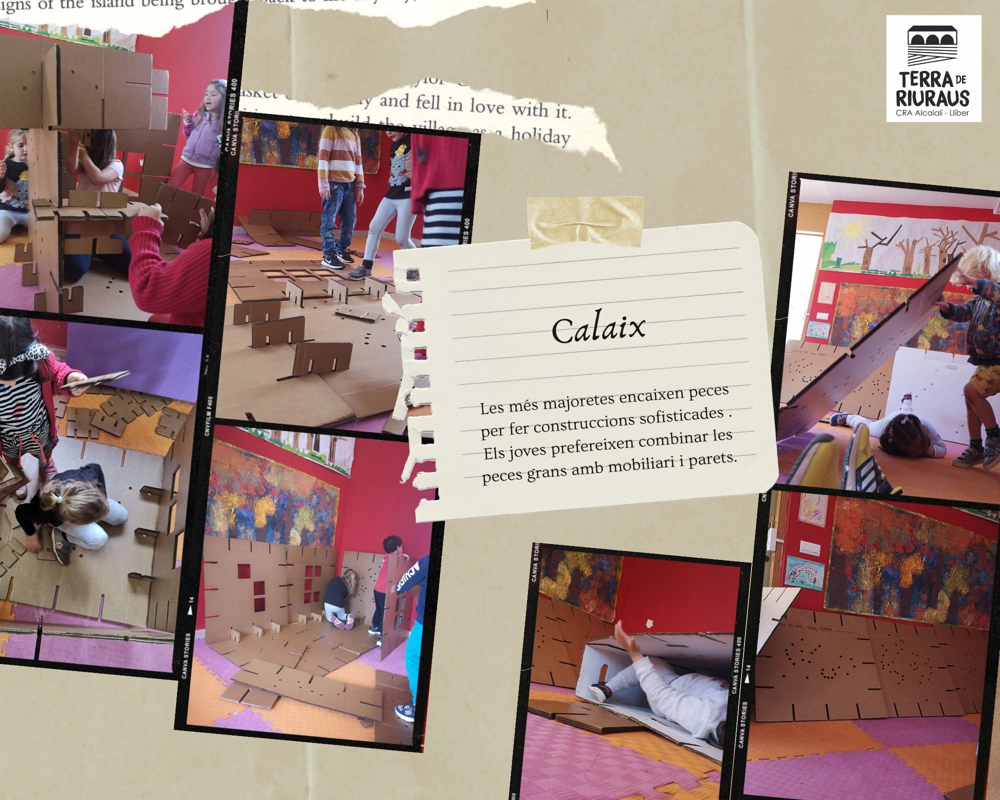 CALAIX és un projecte dissenyat per Arquilecturas, basat en la integració de material no estructurat amb metodologies d’experimentació lliure a l’aula d’infantil i primària a partir de peces de diferents formes encaixables creades amb materials de reciclatge com el cartó. Aquestes peces s’organitzen en una caixa que quedarà com a material propi per al centre.