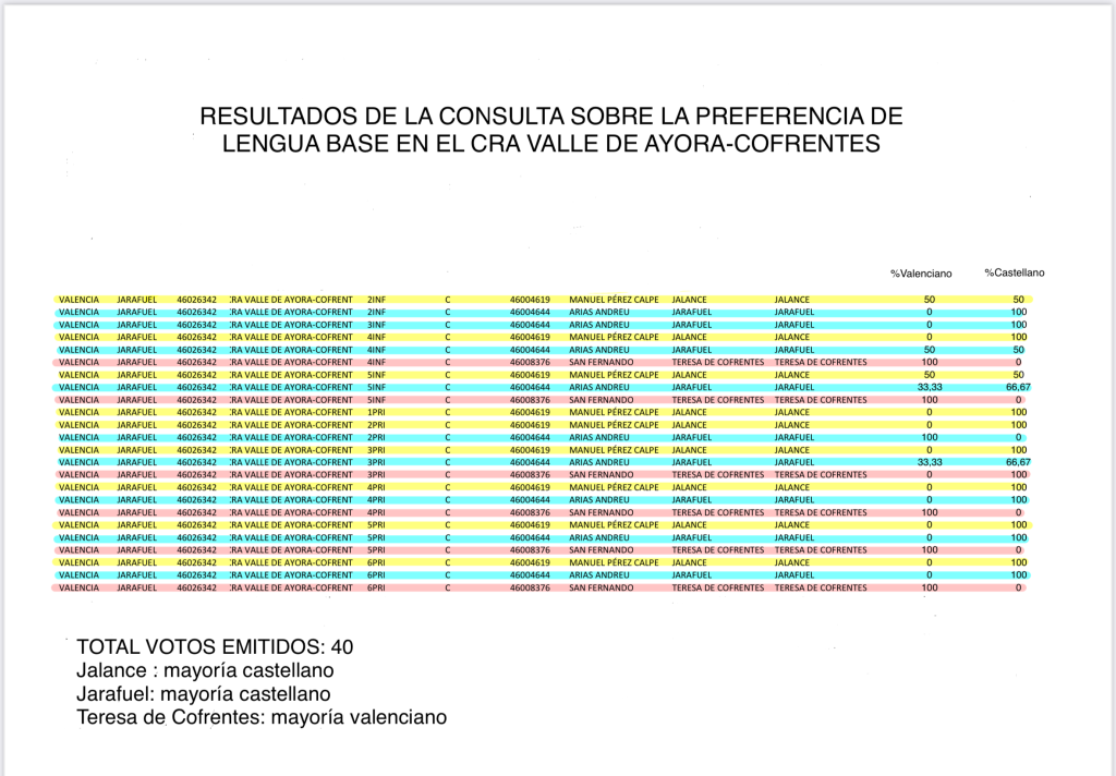 ACTA DE LA VOTACIÓN DE LAS FAMILIAS EL 11 DE ABRIL PARA LA JORNADA CONTÍNUA
