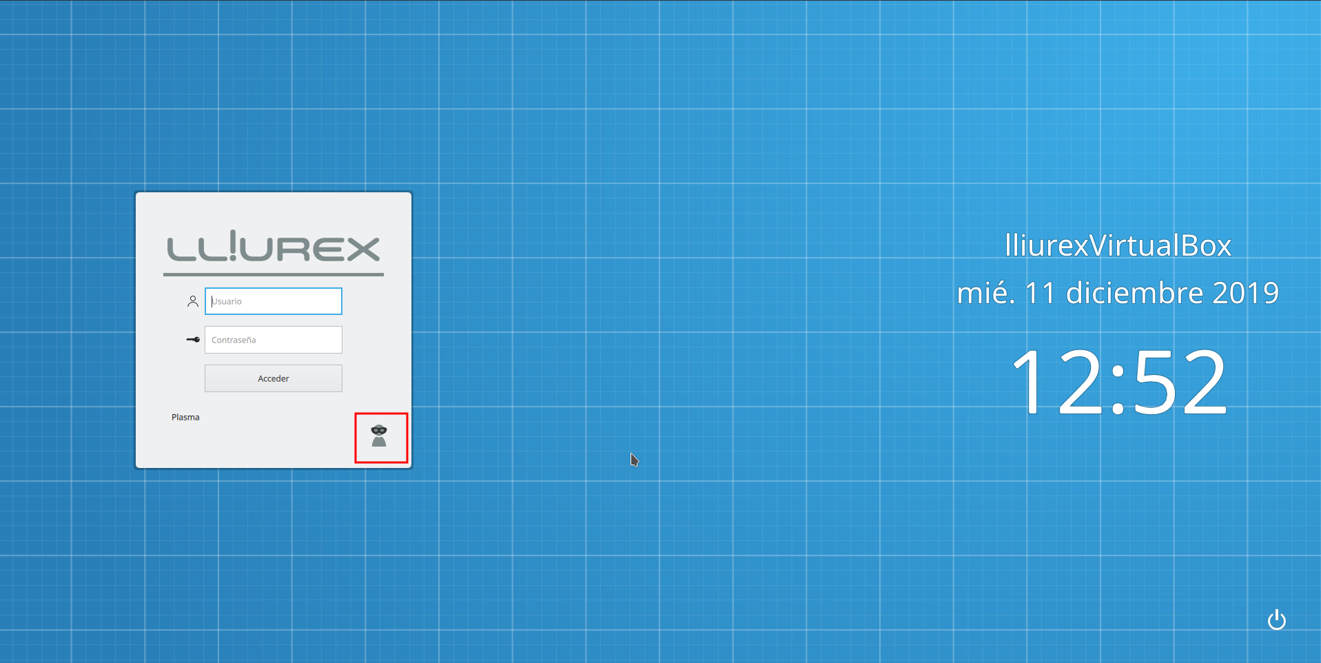Descarregar el fitxer Lliurex19desktop.ova (descàrrega directa4, fitxer torrent5) i obrir-lo amb VirtualBox. S’importarà la màquina virtual creada amb Lliurex, la qual podrem iniciar fent doble clic sobre el seu nom. Una vegada iniciat el Sistema Operatiu Lliurex, hi ha 2 noms d’usuari per poder entrar: