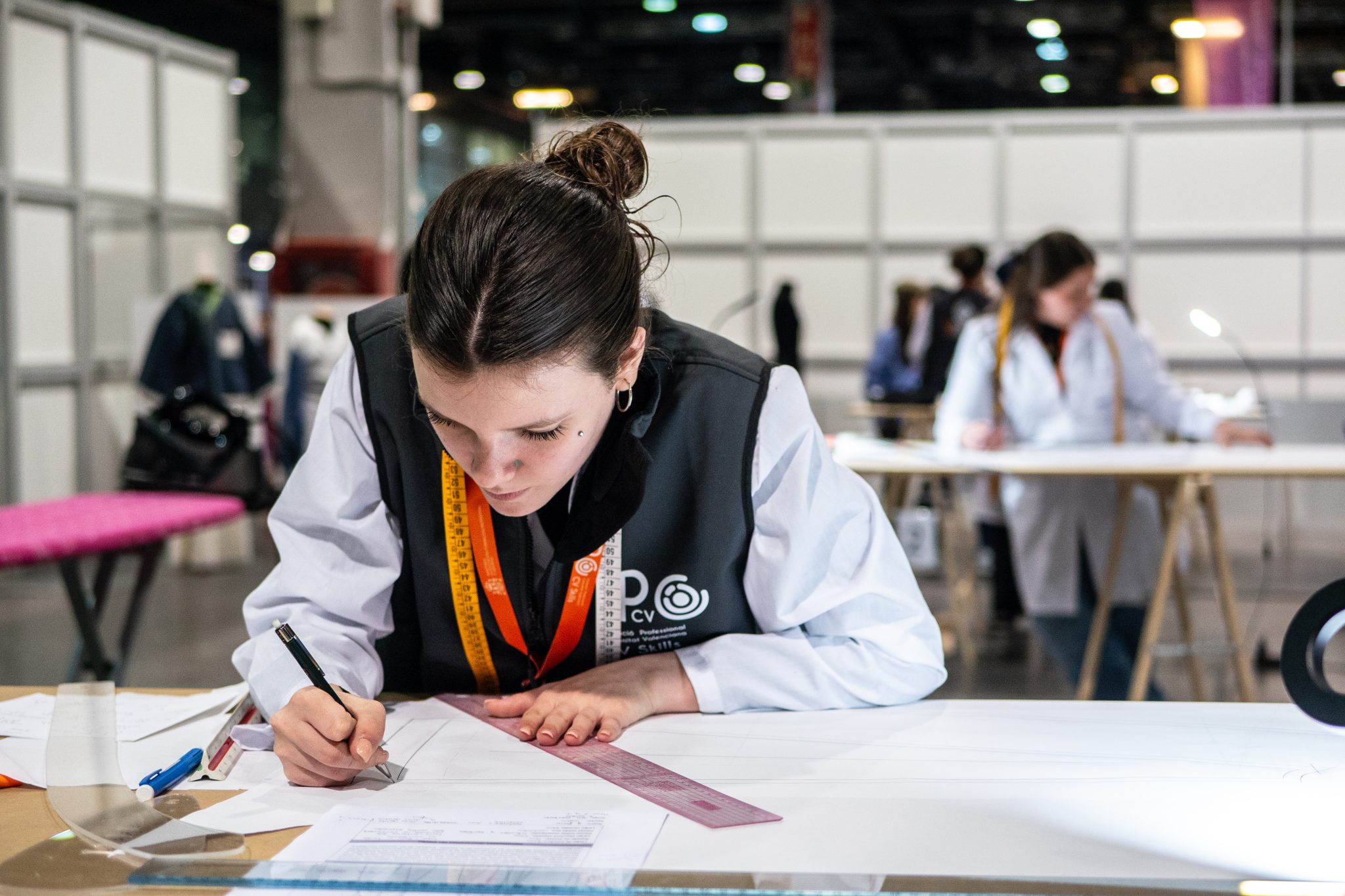 La competición de Tecnología de la moda en CVSkills, consiste en la realización de una serie de pruebas prácticas que abarcan desde el patronaje y corte de tejidos hasta la confección de prendas utilizando maquinaria industrial y técnicas de acabado. Los participantes deben demostrar su dominio de los procesos productivos y su capacidad para trabajar con calidad y eficiencia.