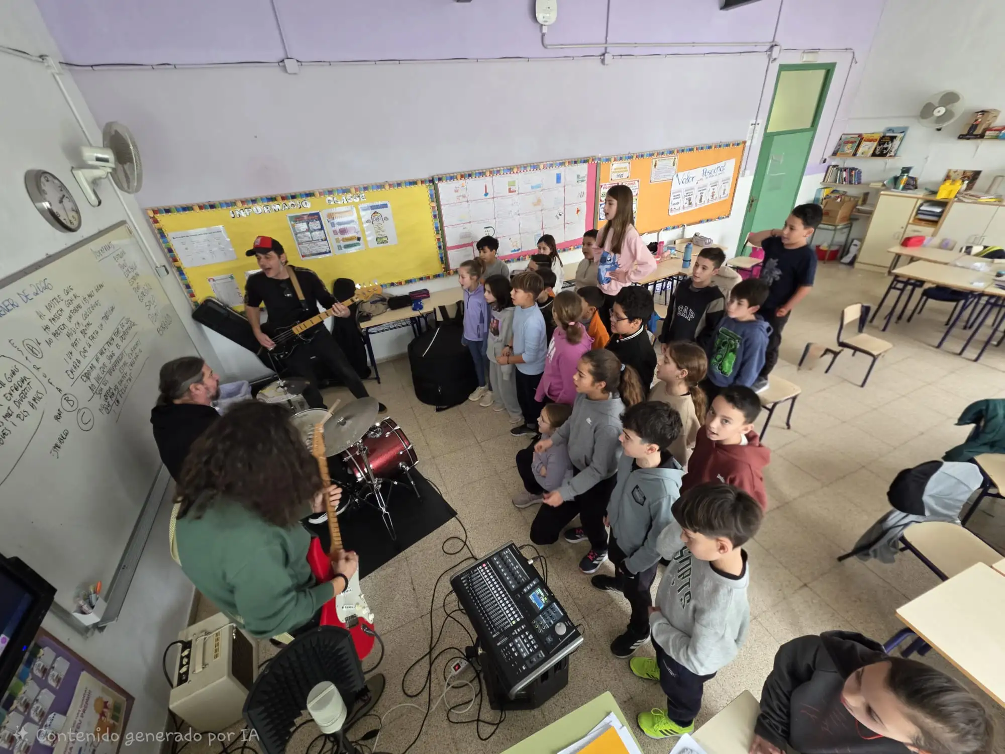 S’hi va tractar l’estil de música rock, els instruments que s’usen, van explicar les parts d’una cançó i van compondre una per a l’escola.