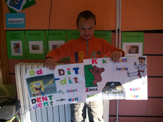A LA NOSTRA CLASSE TENIM UN RACÒ DE LES LLETRES I ALLI FEM L’ABECEDARI. CADA SETMANA UN XIQUET DIFERENT ÉS L’ENCARREGAT DE PREPARAR AMB L’AJUDA DELS SEUS PARES DUES LLETRES QUE DESPRÉS PRESENTE A LA RESTA DE COMPANYS. ARA PODEU VORE LES LLETRES DE : CARLOS CARLA T CARLA M