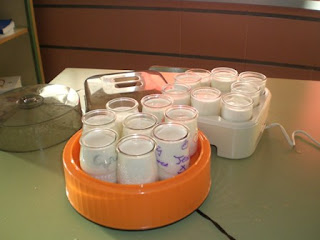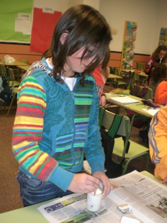 Per aquesta pràctica van portar a escola dos iogurteres. En un got menudet van mesclar llet anb dues culleradetes de iogurt natural i sense sucre. El van deixar durant 8/10 hores, durant eixe temps els ferments làctics del iogurt van fer collar la llet i van obtindre un completament natural. Després el van deixar al frigorífic i va ser un bon esmorzar per a l’hora del pati