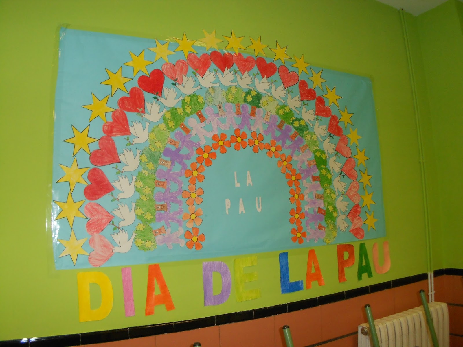 Amb motiu del dia de la Pau, l´escola passarà uns vídeos sobre la pau per intentar reflexionar sobre les injustícies que existeixen al món. També els alumnes amb ajuda dels seus pares ( per fer participes a les famílies d´aquest dia) han elaborat uns colomets de la Pau amb un missatge per poder decorar l´escola.