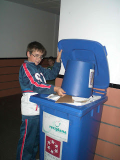 En les següents imatges podeu veure com un alumne de 6é buida les papereres als diferents contenidors.