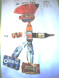 El primer treball vam fer un cos humà amb fotos de menjar de les propagandes dels supermercats.Mireu què originals…..