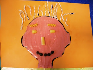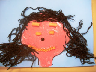 En l´altre treball en plastelina vam fer la cara i en pasta ,grans de café i llanes vam acabar de completar una cara.A vore si coneixeu algú,je,je,…..