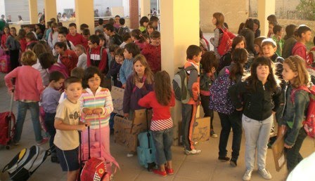 Avui nou de setembre ha segut el primer dia d’escola per als alumnes del CEIP Don Blasco de Alagon. A les nou menys quart començaven a arribar els primers xiquets i s’anaven col·locant a la seua corresponet fila, començant pels més menuts i acabant amb els alumnes de 6é. Venien tots carregats amb motxilles, nous llibres, diccionaris, regles… alguns, molt il·lusionats perquè es tornaven a juntar amb els seus amics, i altres, un poc tristos perquè començava una nova època d’estudi.