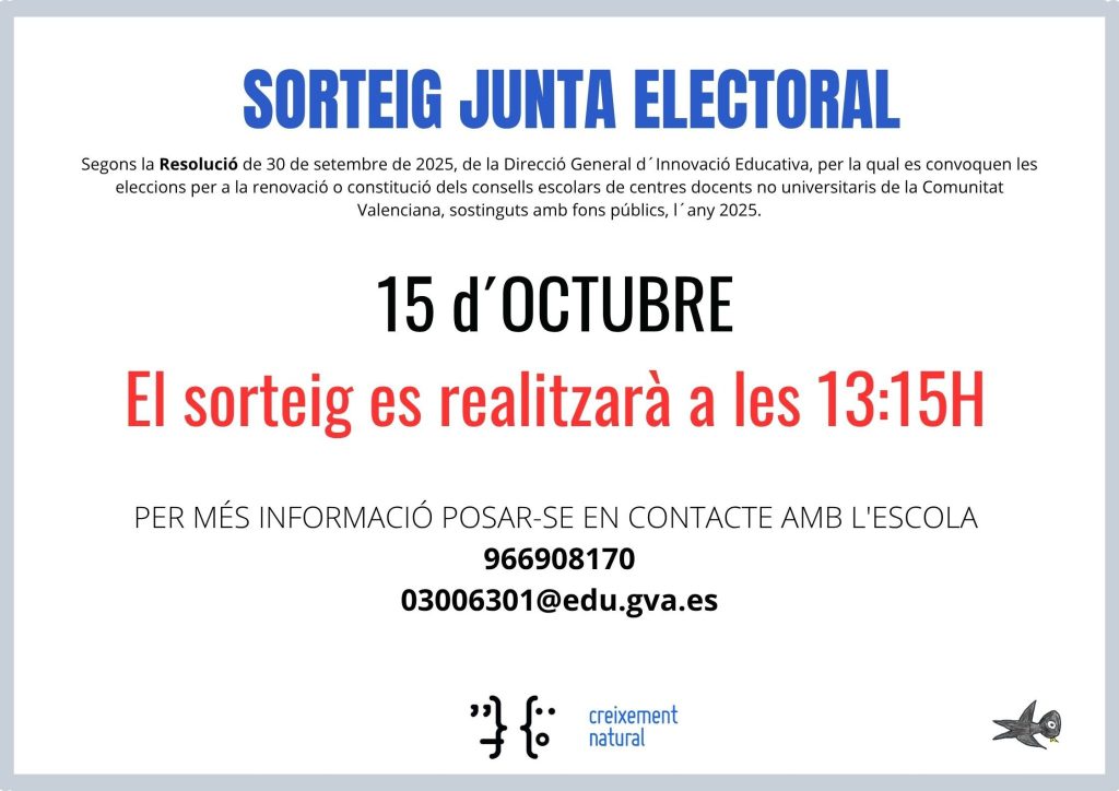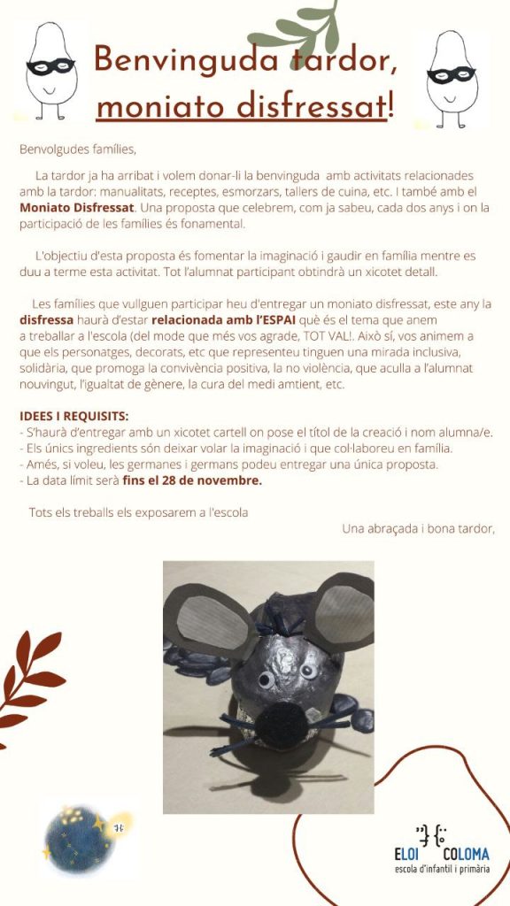 Tema: L’ESPAI 🚀Participació en família.Entregar amb títol i nom de l’alumne/a i/o família.Data límit: 28 de novembre.Tots els treballs podreu … Llegir més - Eleccions al consell Escolar