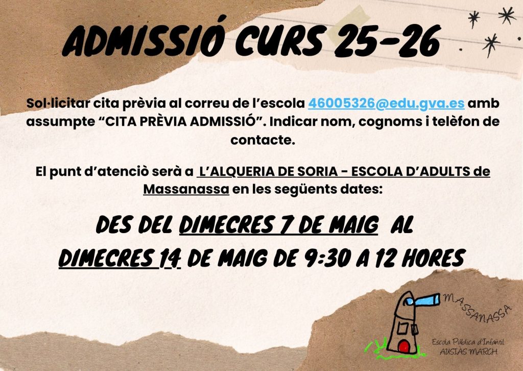 Atenció Famílies de l’alumnat nou de 3 anys (nascuts en 2022)