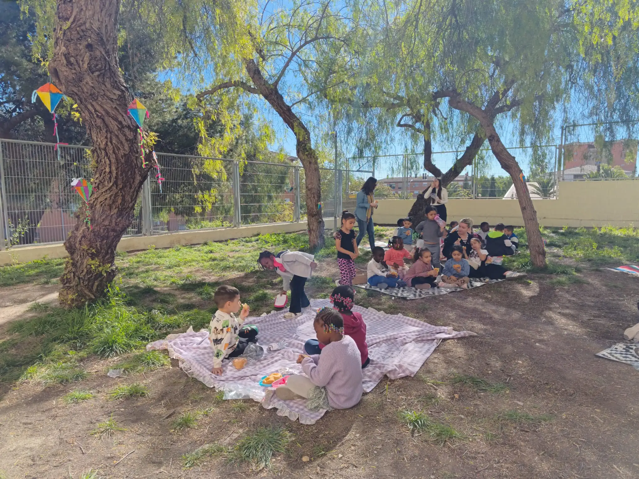 Arriba la primavera, arriba la pasqua, arriba el bon temps, i amb això arriben els esmorzarets al pati. Hem gaudit d’una jornada pasqüera completa, compartint temps de qualitat entre les classes d’Educació Infantil i primer i segon de Primària. Primer hem esmorzat una mona de Pasqua amb xocolate en el nostre pati-bosc, després hem cercat ous de xocolate i per acabar… hem gaudir de diferentes jocs de pasqua: comba, cercles musicals, el mocador, etc. Així hem acomiadat el segon trimestre, de la millor de les maneres!