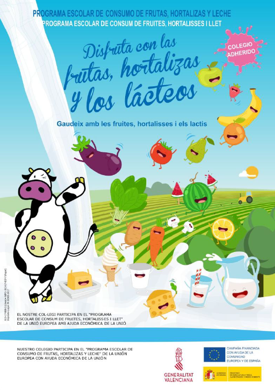 La nostra escola participa en el pla integral de distribució de fruita posat en marxa per La Conselleria d’Agricultura, Ramaderia i Pesca denominat: “Pla Escolar de Consum de Fruites, hortalisses i llet”.
