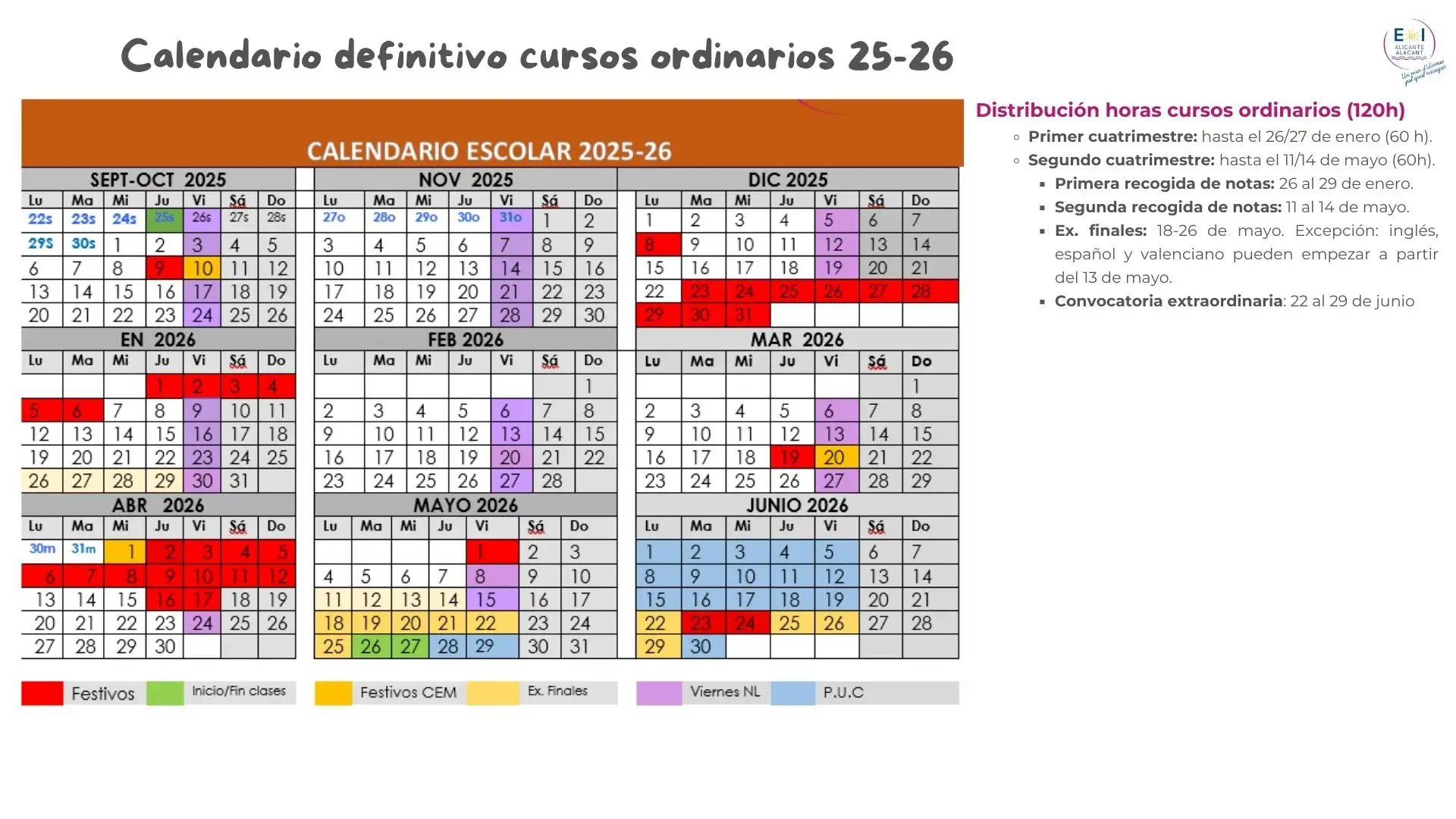 Calendario escolar 2025-26: Inicio de clases 25 y 29 de septiembre 2025