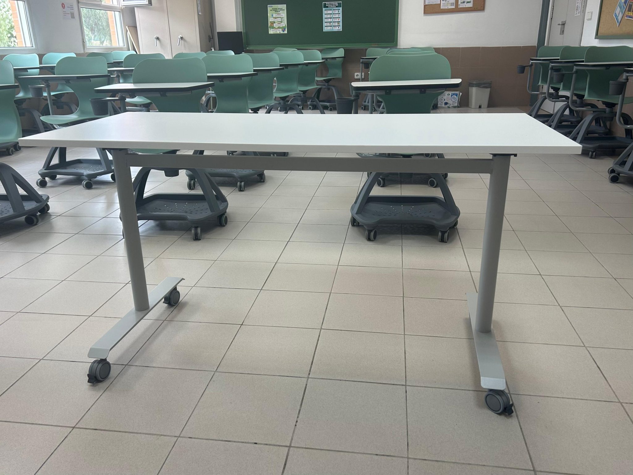 Este centro carece de espacios suficientes para las actividades básicas de una EOI (salón de actos, aula magna, mediateca). Necesitamos un aula polivalente que se adapte a todas las actividades y objetivos de aprendizaje, lingüísticos o culturales: conferencia, taller, club de lectura… Se aprende en un entorno motivador, usando el idioma de forma divertida, real y accional. El aula tradicional no da respuesta a estos retos (mesas no plegables, mobiliario pesado, ruidos al desplazarlo) y no es inclusiva (difícil acceso, mala ubicación para personas con dificultad auditiva o visual, mobiliario estático desaconsejado para alumnado con TDA/H o autismo). El aula transformadora no se ajusta al aprendizaje de idiomas y dificulta las actividades para el grupo-clase. En cambio, las aulas #Idiomas sin fronteras# permiten el aprendizaje con un enfoque DUA comunicativo, participativo y accional, con inclusión efectiva, minimizando las barreras físicas, sensoriales, cognitivas y culturales.