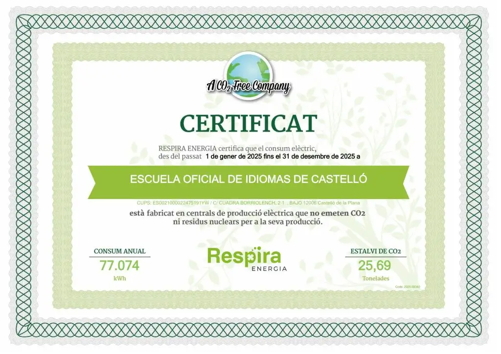 A l’EOI Castelló de la Plana, estem plenament compromesos amb la sostenibilitat, la transició ecològica i el repte climàtic actual. Per això, hem adoptat diverses mesures per contribuir, dins les nostres possibilitats, a la lluita contra l’emergència climàtica i a l’evolució cap a un model més respectuós amb el medi ambient.