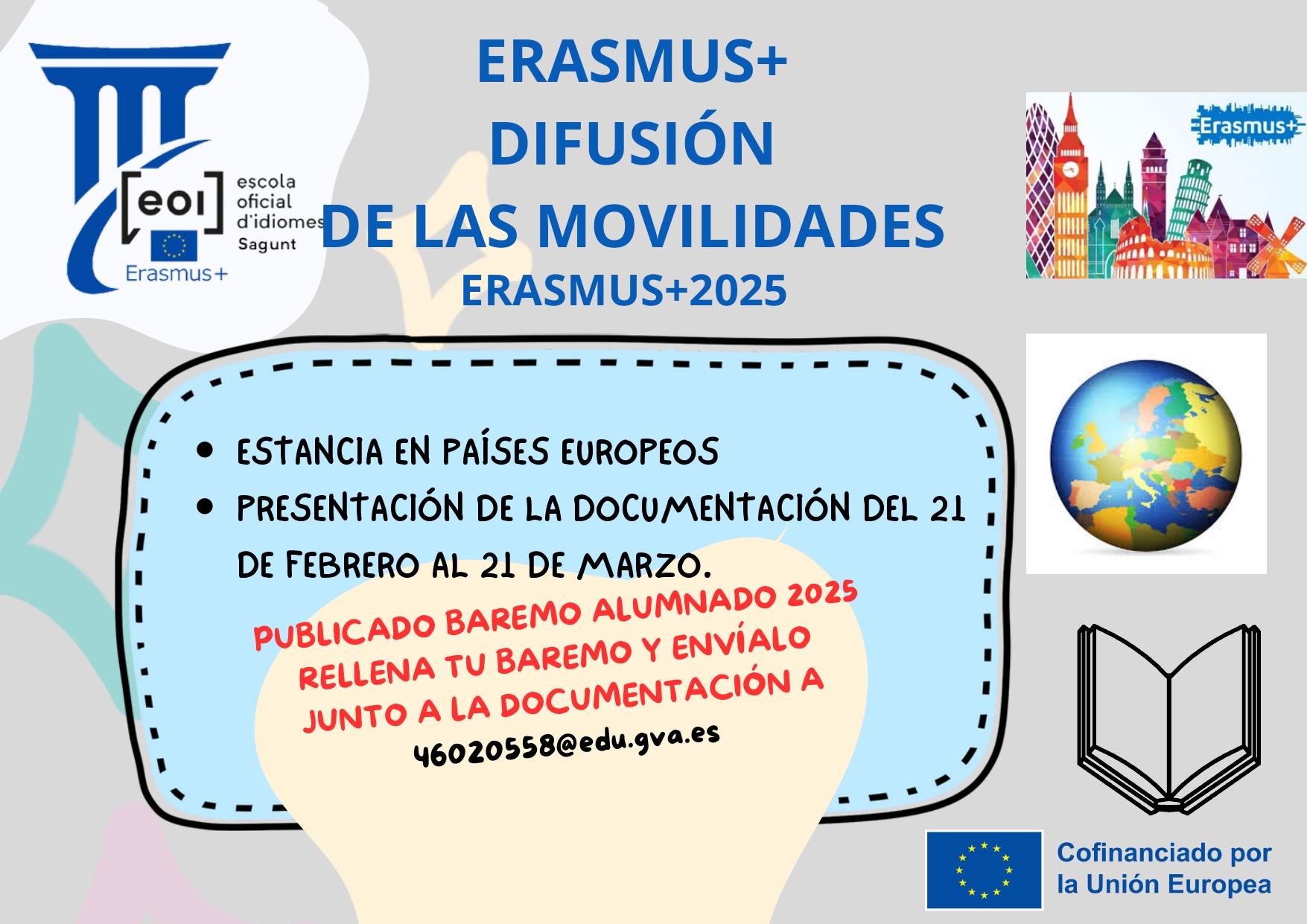 - Durante el primer trimestre del curso 24/25 se lanzará el baremo para que tanto el profesorado como el alumnado pueda optar a la adjudicación de la beca Erasmus.