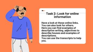 Visualització de vídeos i lectura d’articles sobre el llenguatge descriptiu i adjectius per a descriure espais.
