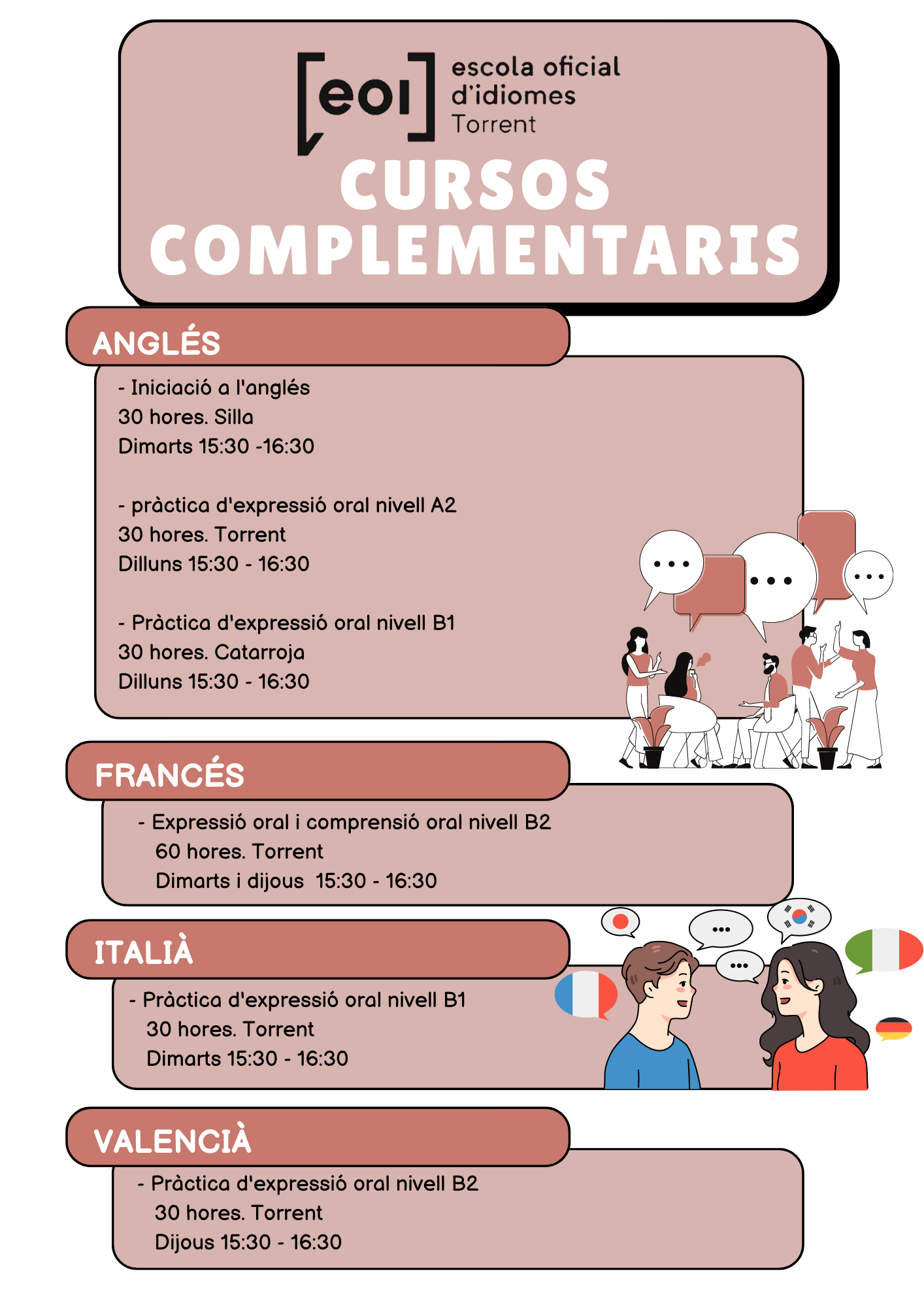 | Matrícula de los cursos complementarios. | Desde el 1 al 23 de septiembre de 2022 en secretaría en horario de atención. | CURSOS DOCUMENTACIÓN HORARIO DE ATENCIÓN |